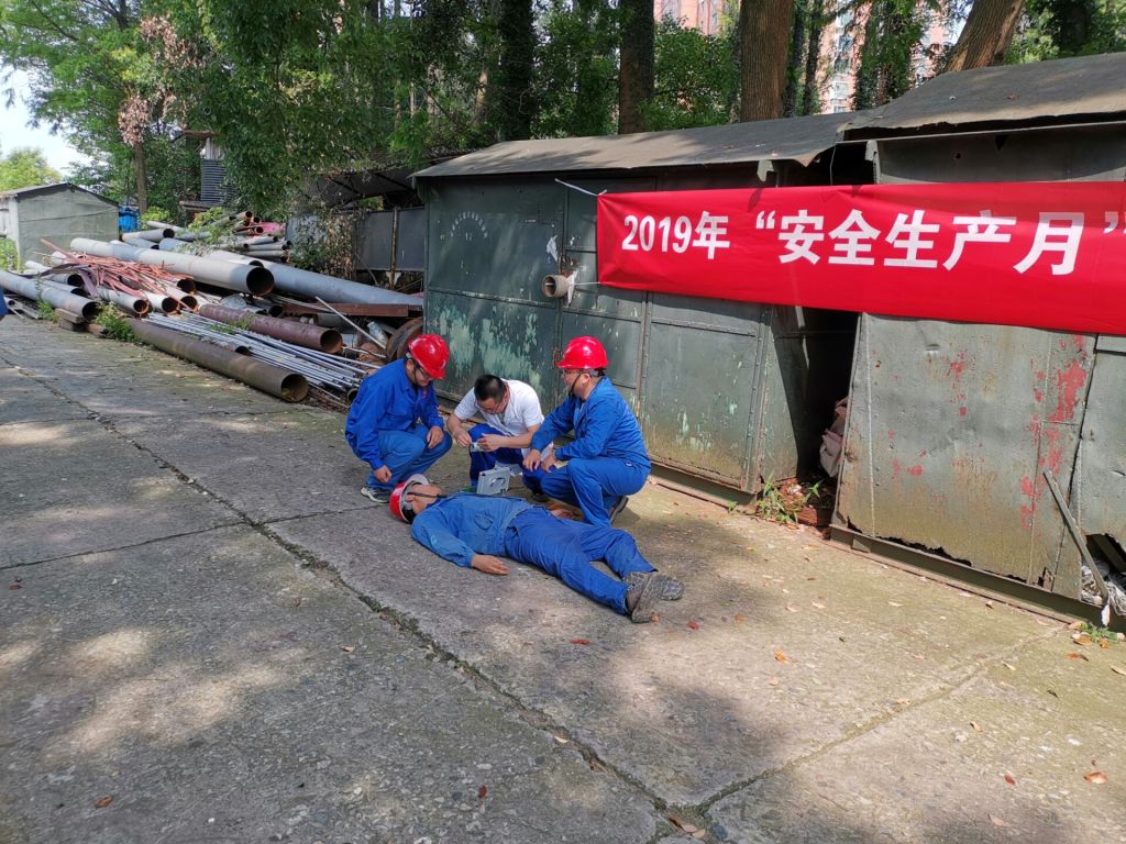 下午2點,隨著現(xiàn)場警報器長笛示警,應(yīng)急救援演練拉開了序幕。施工班組負責(zé)人命令現(xiàn)場立即停止作業(yè),所有施工人員撤離出吊裝現(xiàn)場,并立即撥打120急救電話報告現(xiàn)場安全員。在接到通知后,項目部立即啟動應(yīng)急預(yù)案,并組織各小組進行救援。警戒組封鎖事故現(xiàn)場,維持現(xiàn)場秩序;醫(yī)療救護組對傷員進行了簡單的救治和護理;疏散組負責(zé)對現(xiàn)場與救援無關(guān)人員進行疏散,防止事態(tài)擴大。各組各司其職,演練現(xiàn)場井然有序,最后救護車輛和醫(yī)療人員趕到現(xiàn)場,將傷員送往醫(yī)院,演練活動結(jié)束。