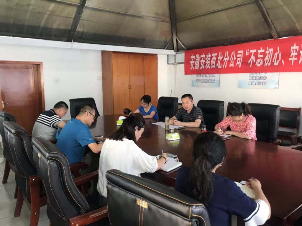 根據安徽安裝公司黨委“不忘初心、牢記使命”主題教育工作部署,8月2日上午,安徽安裝公司黨委書記、董事長胡六中赴西北分公司開展主題教育調研工作,并為分公司黨員上黨課。