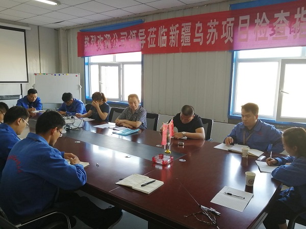 8月11日上午,安徽安裝公司黨委書記、董事長胡六中赴新疆新疆烏蘇中水回用項目檢查指導工作,并為項目部員工上黨課。副總經理王軍陪同調研。