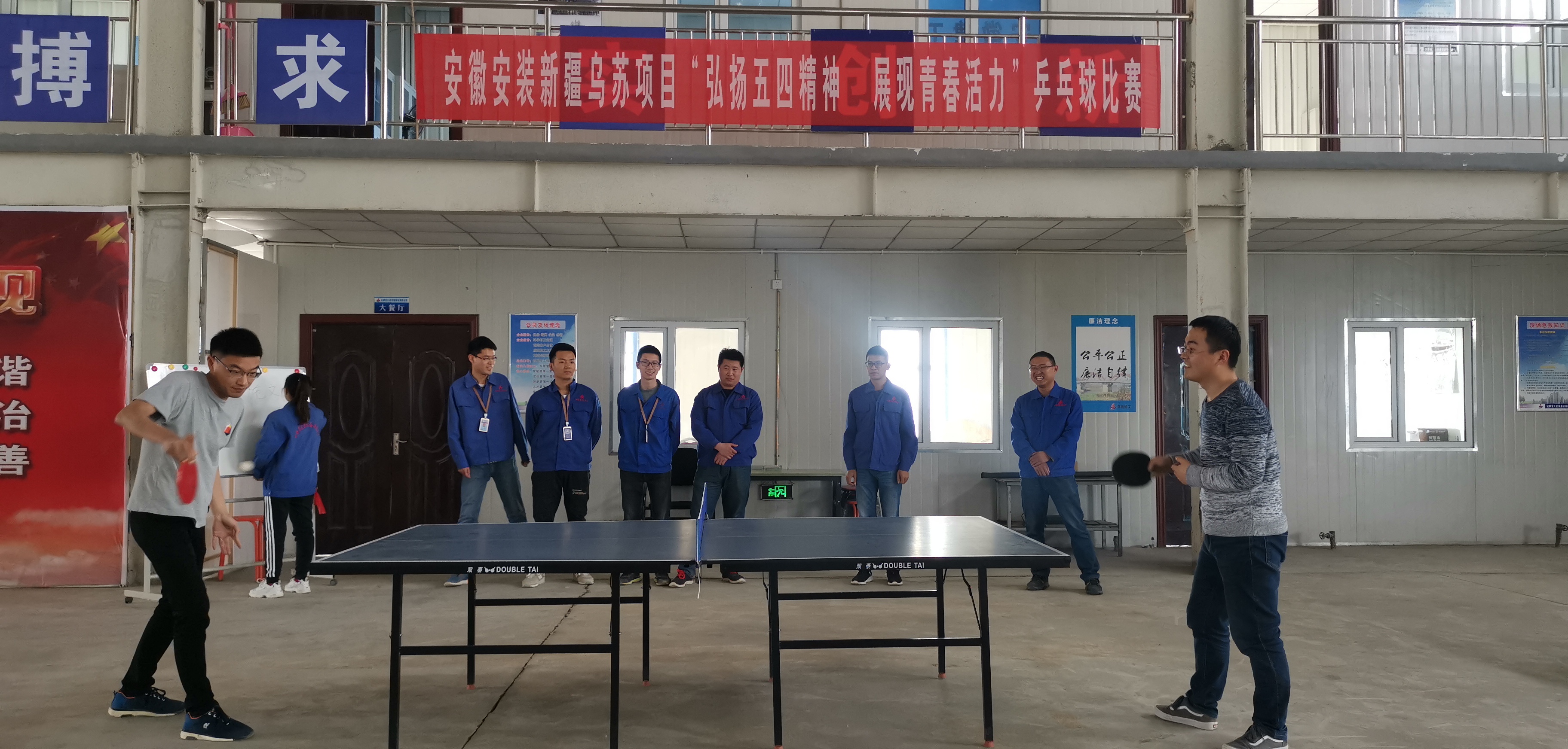 為紀念五四愛國主義青年運動100周年,展現團隊青年朝氣蓬勃、健康向上的精神風貌,2019年5月4日,新疆烏蘇項目部組織開展了“弘揚五四精神 展現青春活力”乒乓球比賽。