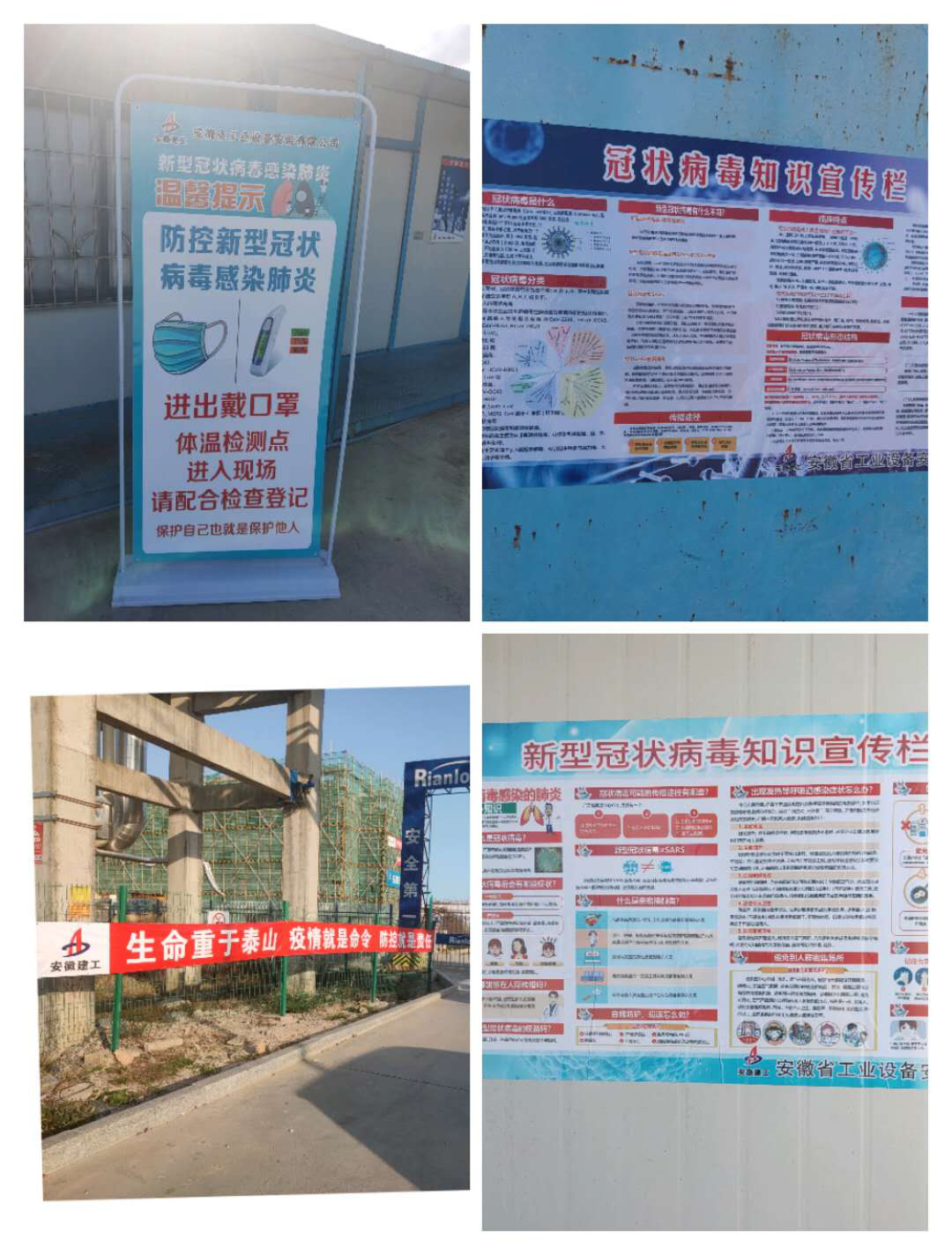 一是編制方案。根據公司《安徽安裝公司工程項目疫情防控期間復工工作須知》要求,項目部編寫了疫情防控方案和應急預案,確保做到“七個到位”:防控機制到位、員工排查到位、設施物資到位、內部管理到位、宣傳教育到位、安全生產到位、信息報送到位,確保復工機制健全到位。