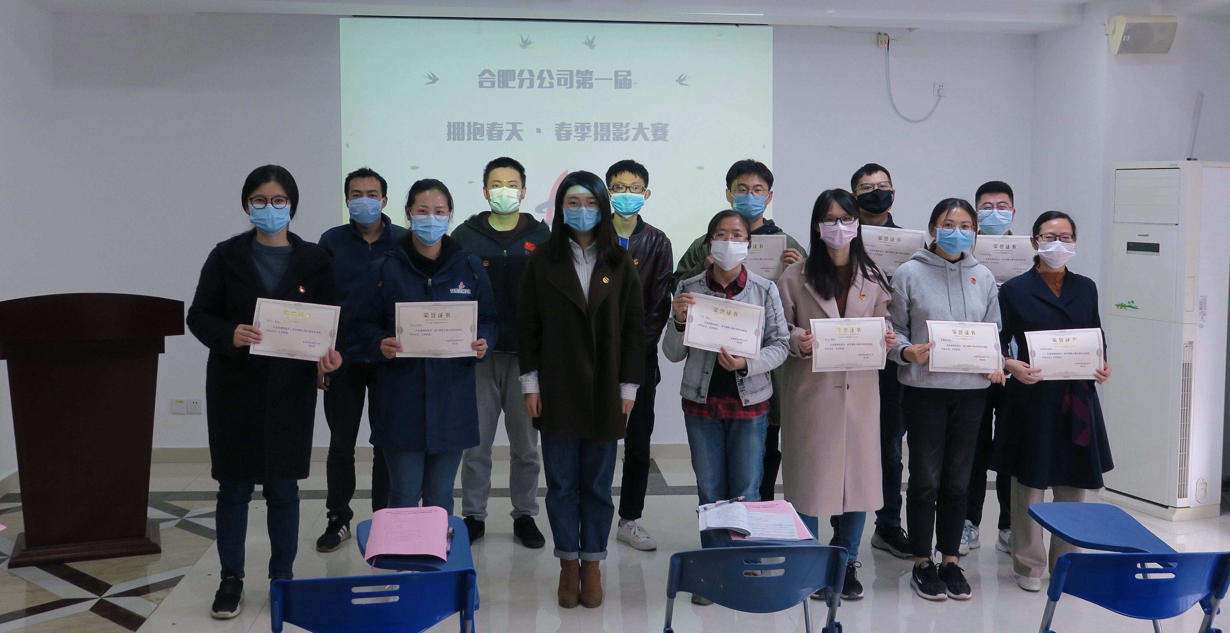 4月14日,合肥分公司團支部在公司職工之家舉行簡約的頒獎典禮,對獲獎人員進行表彰。公司團委書記王偉到會指導,分公司黨支部書記胡迎東、副經理袁玉海、機關部門負責人、在肥團員青年等參加了頒獎典禮。典禮儀式上團支部書記包健再次展示每張攝影作品,由作者現場介紹了作品的拍攝意圖和創作心境,大家相互交流,談心得、聊感受,妙語連珠,掌聲不斷,賞析作品成果,研討攝影技巧,再一次感受到春日的美好!