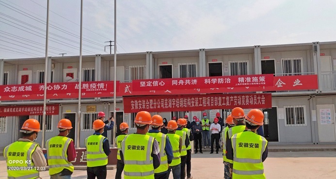 為確保年度各項(xiàng)目目標(biāo)任務(wù)順利完成,貫徹落實(shí)集團(tuán)和安裝公司兩級(jí)職代會(huì)及疫情防控、復(fù)工復(fù)產(chǎn)工作推進(jìn)會(huì)精神,3月21日上午,安徽安裝召開蕪湖宇培裝配生產(chǎn)基地項(xiàng)目“大干90天”勞動(dòng)競(jìng)賽動(dòng)員會(huì)。公司黨委書記、董事長(zhǎng)胡六中,紀(jì)委書記、工會(huì)主席李寬旭,合肥分公司領(lǐng)導(dǎo)班子成員、項(xiàng)目管理人員和施工班組參加了競(jìng)賽動(dòng)員會(huì)。