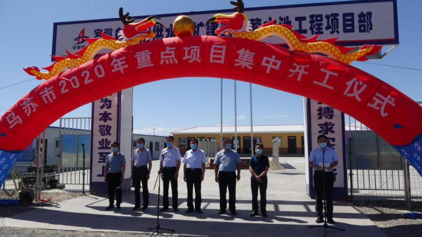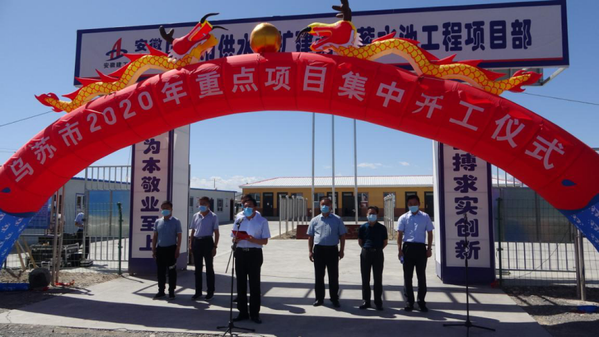 2020年5月28日,烏蘇市2020年重點項目集中開工儀式在烏蘇市供水改擴建調節蓄水池工程項目部召開。塔城地區地委委員阿依丁·托留汗,烏蘇市政協黨組書記王永安,烏蘇市委常委、常務副市長陳斌,塔城地區水利局、國土資源局等相關部門領導及項目各參建單位參加開工儀式,開工儀式由陳斌主持。