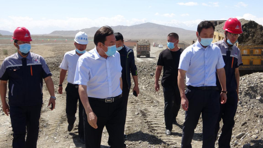 塔城地區地委委員阿依丁·托留汗等領導一行赴施工現場視察