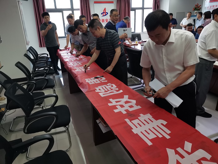 隨后全體參會人員在副總經理高飛的帶領下進行了安全宣誓,并在主題橫幅上鄭重簽名,做出莊嚴的安全承諾。下一步,公司將積極開展安全教育培訓、安全知識競賽、隱患排查治理等一系列活動,進一步增強全員安全意識,提高全員安全素質,促進公司安全生產水平進一步提升和安全生產形勢持續穩定好轉,為公司健康發展營造良好的安全環境。