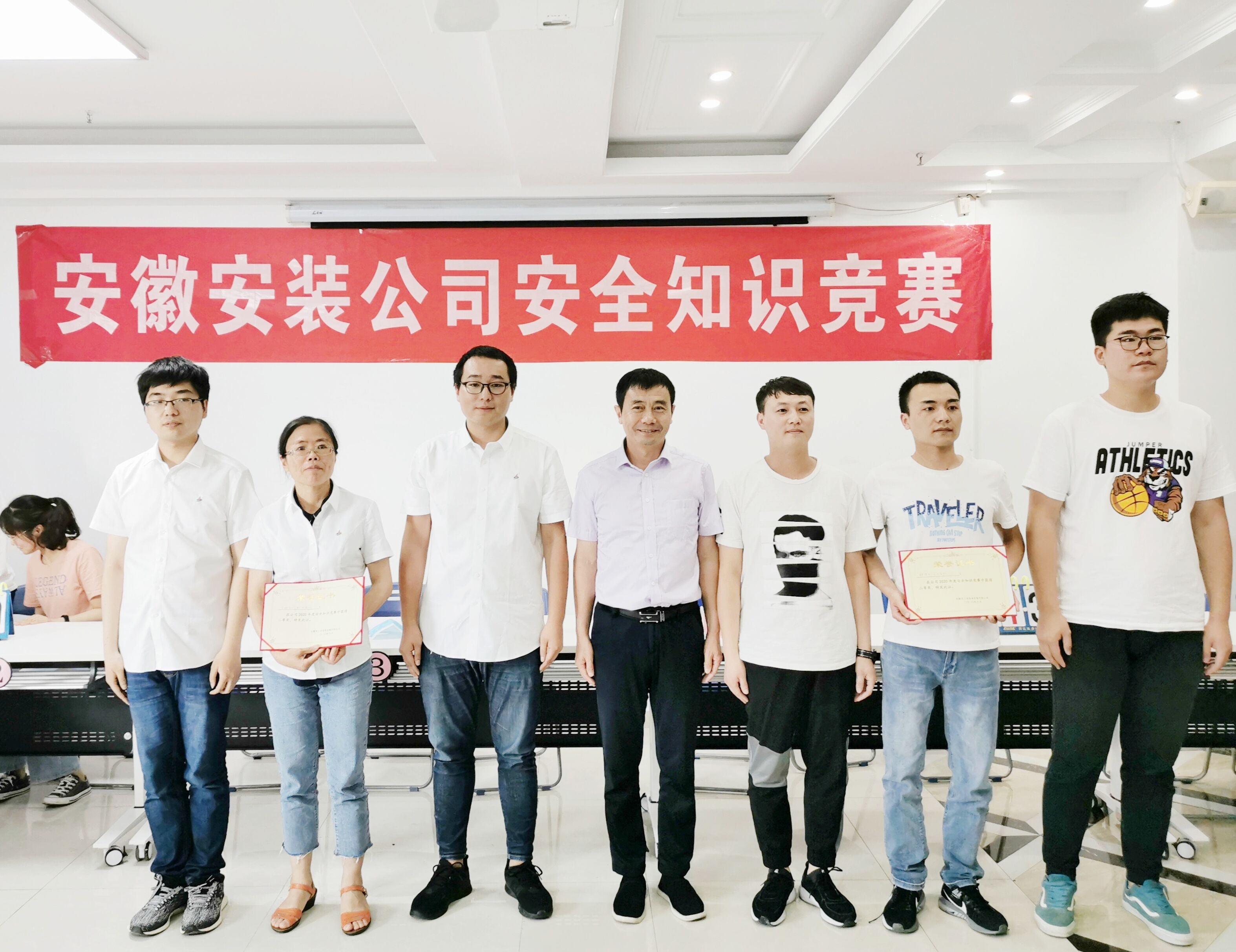 為切實開展2020年全國第十九個“安全生產月”活動,進一步提高全員安全意識與知識水平,普及疫情防控相關知識,6月11日下午,安徽安裝公司舉辦安全生產知識競賽。公司黨委書記、董事長胡六中,副總經理高飛,紀委書記、工會主席李寬旭,副總經理李原,總工程師吳繼成應邀出席。