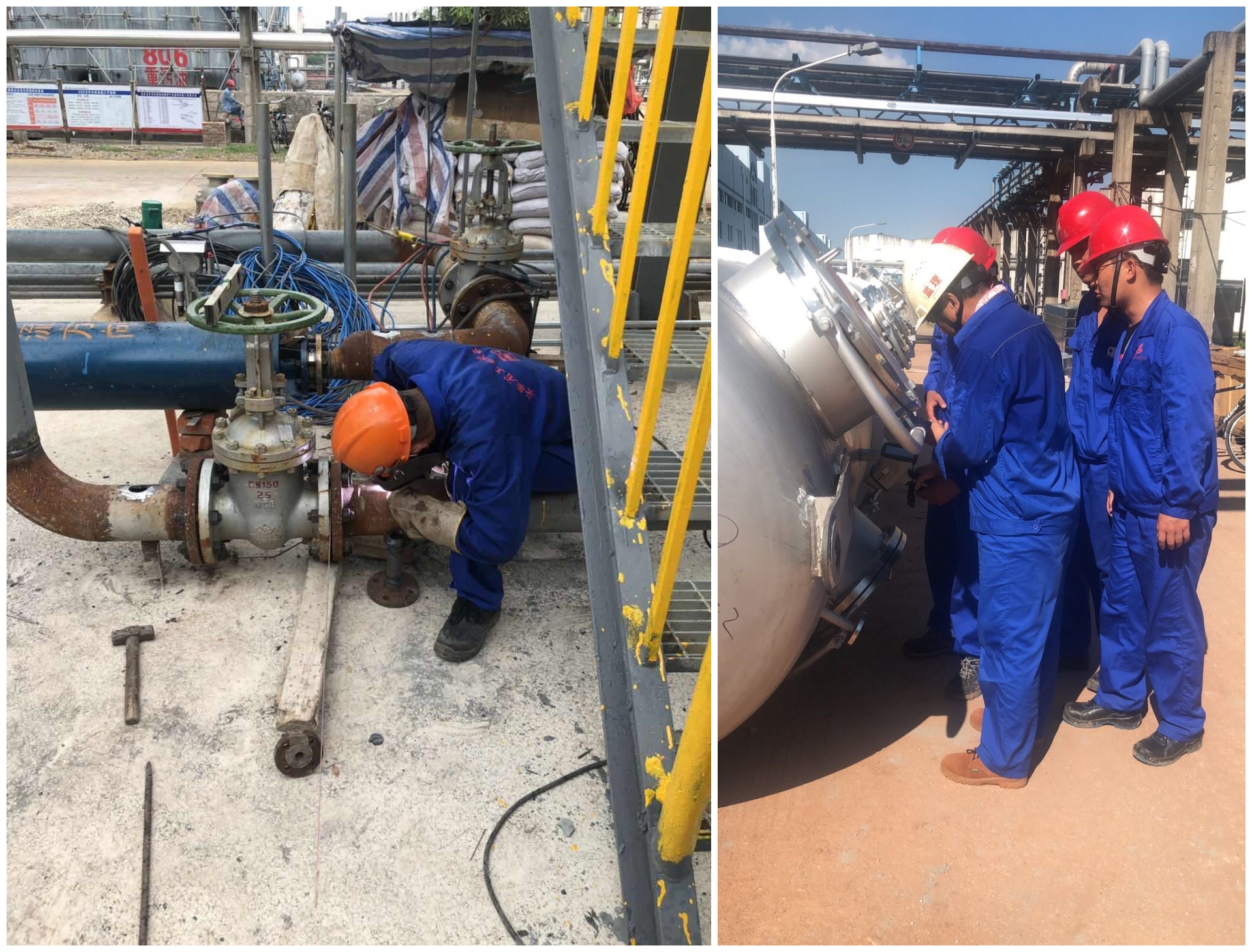 7月份,暴雨連綿,高溫不斷。面對持續異常天氣,安慶石化項目全體人員發揚安徽建工人“特別能吃苦、特別能戰斗”的企業作風,錯峰作業,搶抓工期。早上6點,安慶石化項目人員已經開始檢查崗前著裝、布置各崗點工作任務,開始了一天忙碌的工作:圍堰及地坪施工、罐頂內外部防腐及焊接、焊縫無損檢測、污水管道安裝.....一項項施工任務緊張而有序的開展開來。
