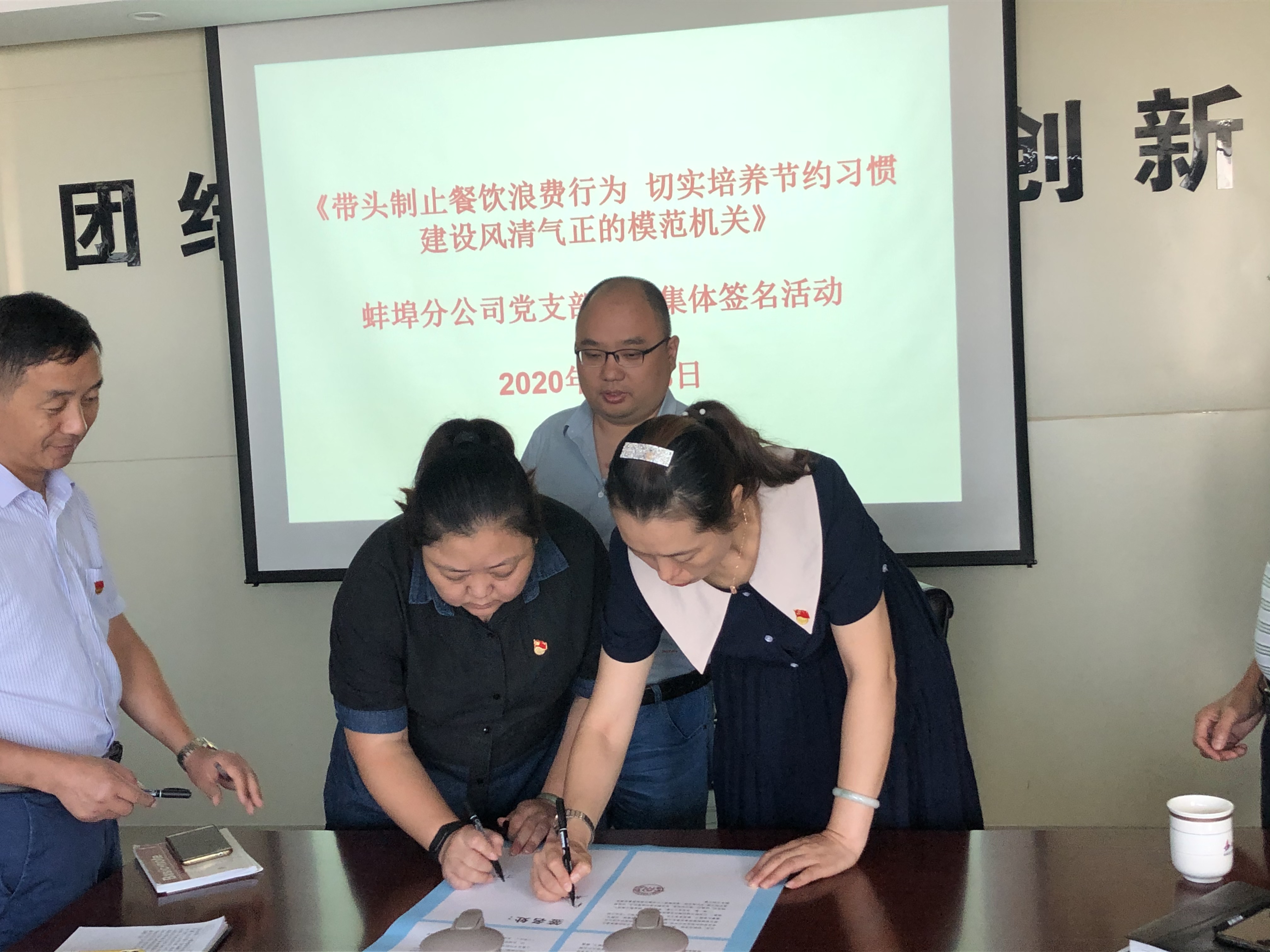 會議最后,傳達了《帶頭制止餐飲浪費行為 切實培養(yǎng)節(jié)約習(xí)慣建設(shè)風(fēng)清氣正的模范機關(guān)——致廣大黨員干部的倡議書》,支部全體黨員集中簽名承諾。