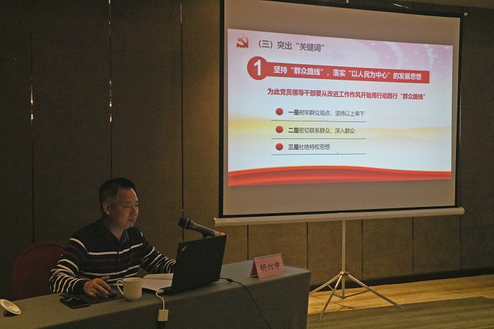 胡六中在報(bào)告中帶領(lǐng)大家共同回顧了習(xí)近平總書記考察安徽行程路線和重要講話精神,他指出,總書記在考察中多次提到“要牢固樹立以人民為中心的發(fā)展思想”“要踐行黨的宗旨,樹牢群眾觀點(diǎn)”“要多謀民生之利、多解民生之憂”,全體黨員領(lǐng)導(dǎo)干部一要從改進(jìn)工作作風(fēng)開始用行動踐行“群眾路線”,落實(shí)“以人民為中心”的發(fā)展思想;二要堅(jiān)持“黨管干部”,全面深化干部制度改革;三要堅(jiān)持“一體化”和“高質(zhì)量”,推動黨建與生產(chǎn)經(jīng)營深度融合。