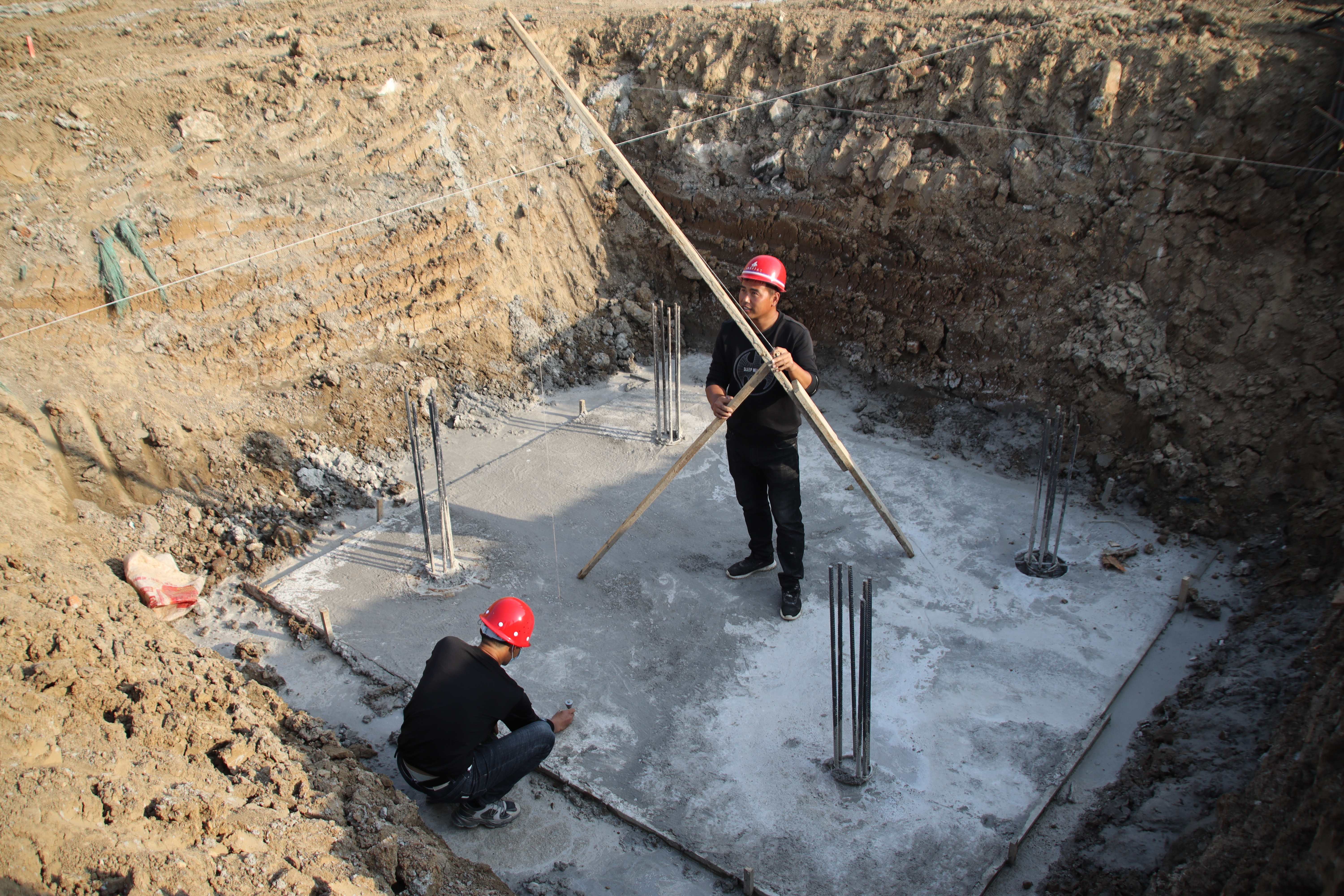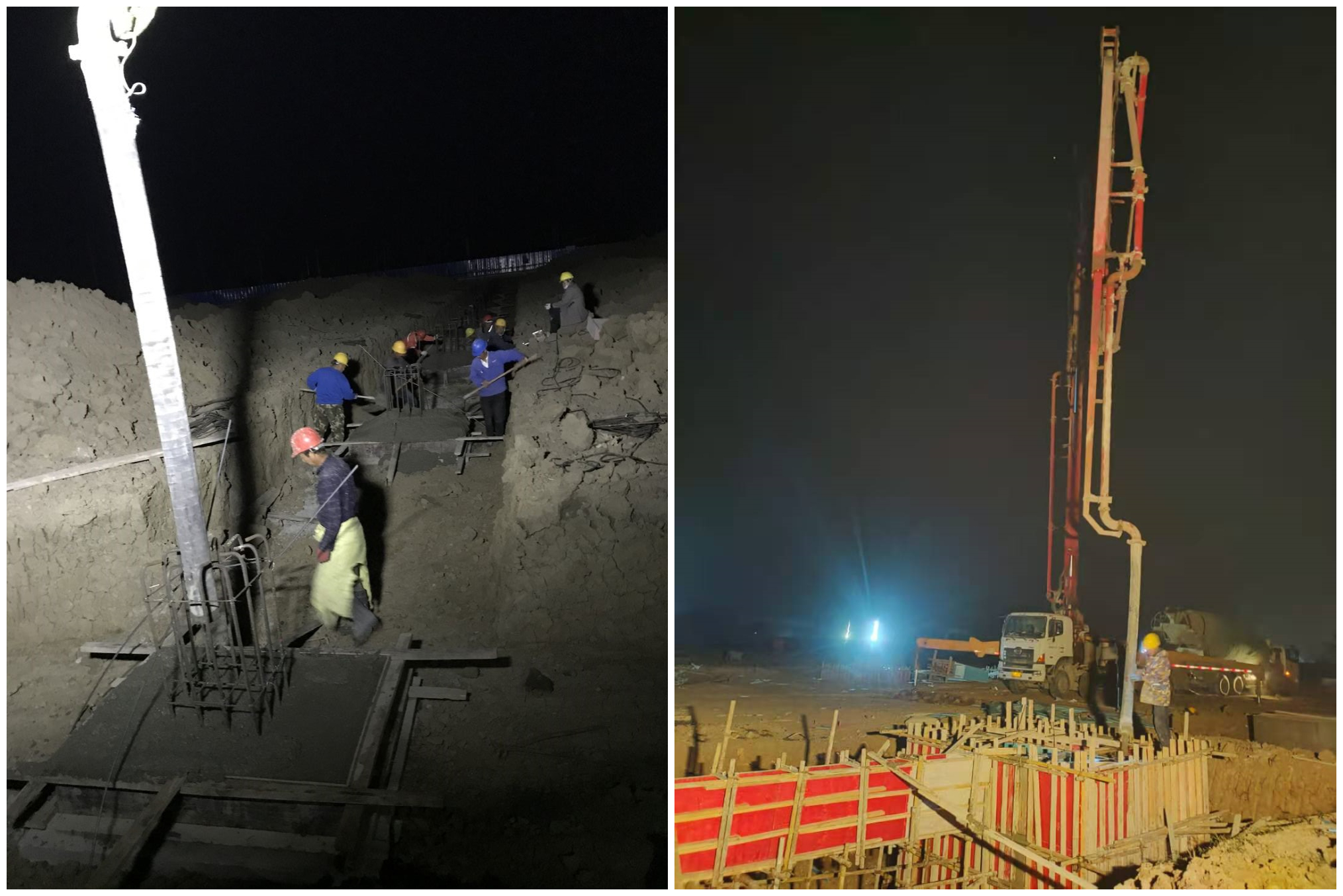 初冬以至,天氣漸寒,項(xiàng)目上卻是一片大干的火熱景象,放線測(cè)量、鋼筋焊接、承臺(tái)澆筑……所有施工機(jī)械滿負(fù)荷運(yùn)轉(zhuǎn),所有項(xiàng)目人員均在生產(chǎn)一線爭(zhēng)分奪秒。按照原施工計(jì)劃,臨港項(xiàng)目189個(gè)承臺(tái)的鋼筋捆扎焊接及三千余立方的混凝土澆筑應(yīng)在11月底完成,但晴雨表顯示11月下旬均為陰雨天,所以必須提前完成此項(xiàng)施工任務(wù)。時(shí)間緊、任務(wù)重,項(xiàng)目部立刻行動(dòng)起來,及時(shí)調(diào)整施工及進(jìn)度方案,加大人力、物力的投入,全體員工主動(dòng)放棄休息,不分晝夜、“5+2”“白+黑”,輪流堅(jiān)守在施工現(xiàn)場(chǎng)。臨港的夜幕已經(jīng)緩緩降臨,但項(xiàng)目上仍然人頭攢動(dòng)、身影忙碌,施工人員在黑夜的畫紙上勾勒出了一副“大干快上,只爭(zhēng)朝夕”的場(chǎng)景。