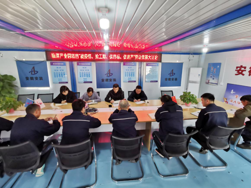 為認真貫徹集團公司“戰疫情、搶工期、保目標、促超產”勞動競賽活動精神,11月19日下午,安徽安裝公司圍繞“不能按時交工為恥辱”的履約意識,在臨港項目部會議室組織開展“戰疫情、搶工期、保目標、促超產”主題大討論活動。公司紀委書記、工會主席李寬旭,公司相關部門負責人,蚌埠分公司領導班子成員,項目管理人員等共計20余人參加會議,會議由李寬旭主持。