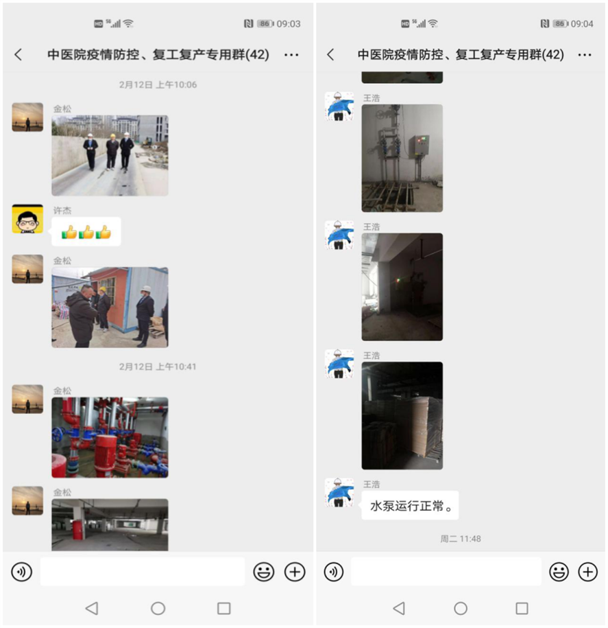二是“高效推進”。2021年2月19日(農歷正月初八),項目部主要管理人員全員到崗,公司副總經理高飛深入項目一線對現場進行了全面的復工巡查,組織召開了“2021年阜陽市潁東區中醫院項目春節后復工復產會”會上,高飛對推進節后復工復產、做好疫情防控等工作提出具體要求。項目部與現場管理辦公室、建設、監理等參建單位共同組織召開“阜陽市潁東區中醫院PPP項目2021年春節后復工復產工作會議”,對春節后復工復產工作進行全面部署,項目經理許杰在會上作出表態,提出“復工即搶工,開工即大干”的工作精神,對節后如何有序開展復工復產作了具體安排。