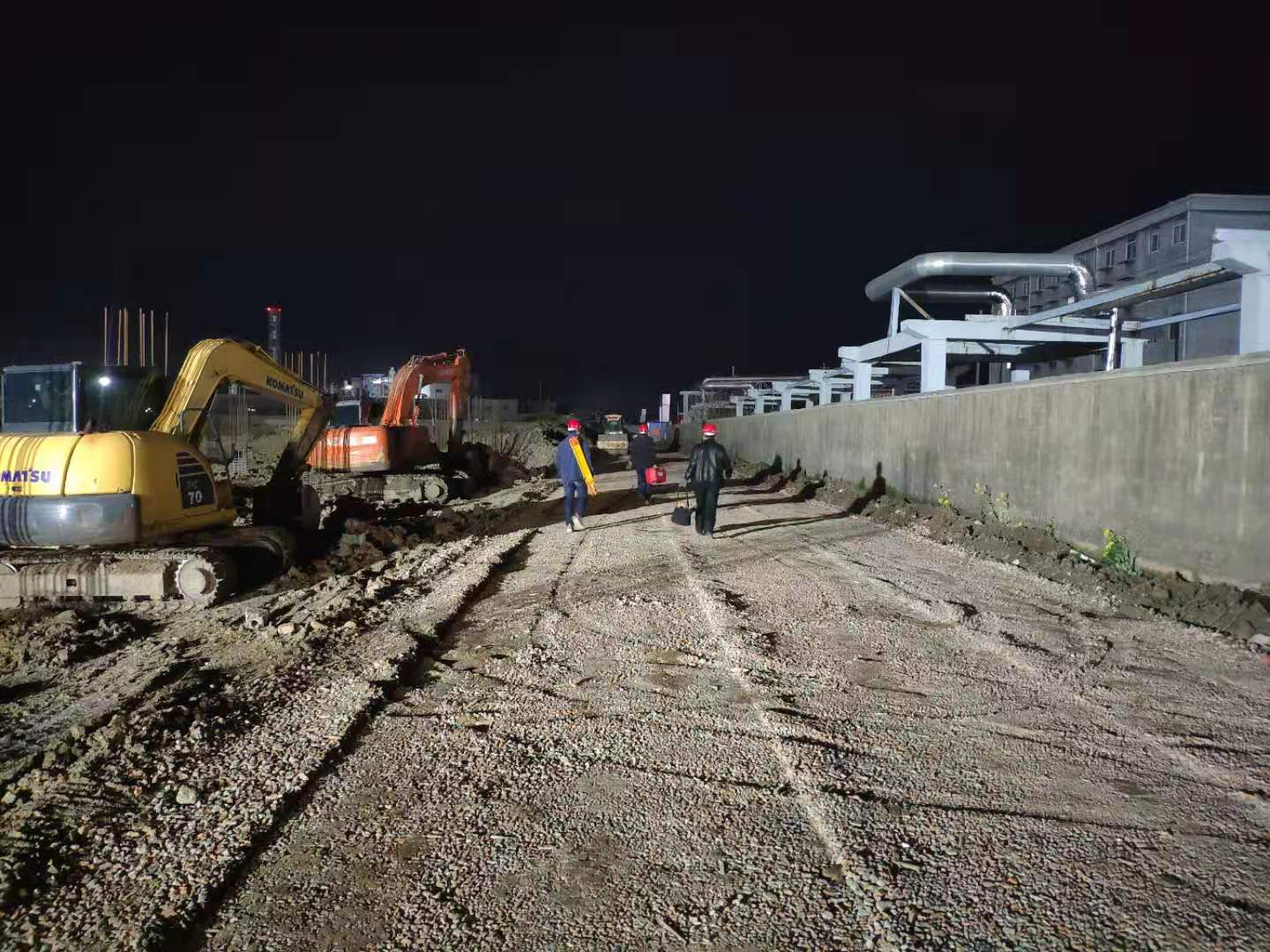 伴隨著挖掘機、推土機的轟鳴聲,壹石通項目現場正在有條不紊的進行著一道道施工工序。由于項目工期時間緊、任務重,項目部全體員工發揚勇于擔當、不畏艱苦的精神以實干、苦干、大干、埋頭干,推動各項工作快速順利開展,通過倒排施工計劃、優化作業環節,強化管控、嚴防漏洞。重要工序施工時,采取白天黑夜兩班倒連續作業模式,以全力保障工期進度和質量。整個施工過程中,項目部一直堅持:一是把安全工作放在首位,包括施工環境、作業監護、飲食衛生等方面的安全管理一定要做細做實做到位;二是積極引導全員、全過程、全方位質量提升,更新質量知識體系,提升全員質量意識,推廣先進的質量管理方法;三是施工管理經驗進行梳理整合,將成功的管理模式發揚光大;四是加強現場文明施工安全標準化建設,充分展示企業形象和企業文化;五是加強主題教育學習,加強政治思想宣傳工作,進一步提高全員政治站位,鼓舞干勁,爭創一流。