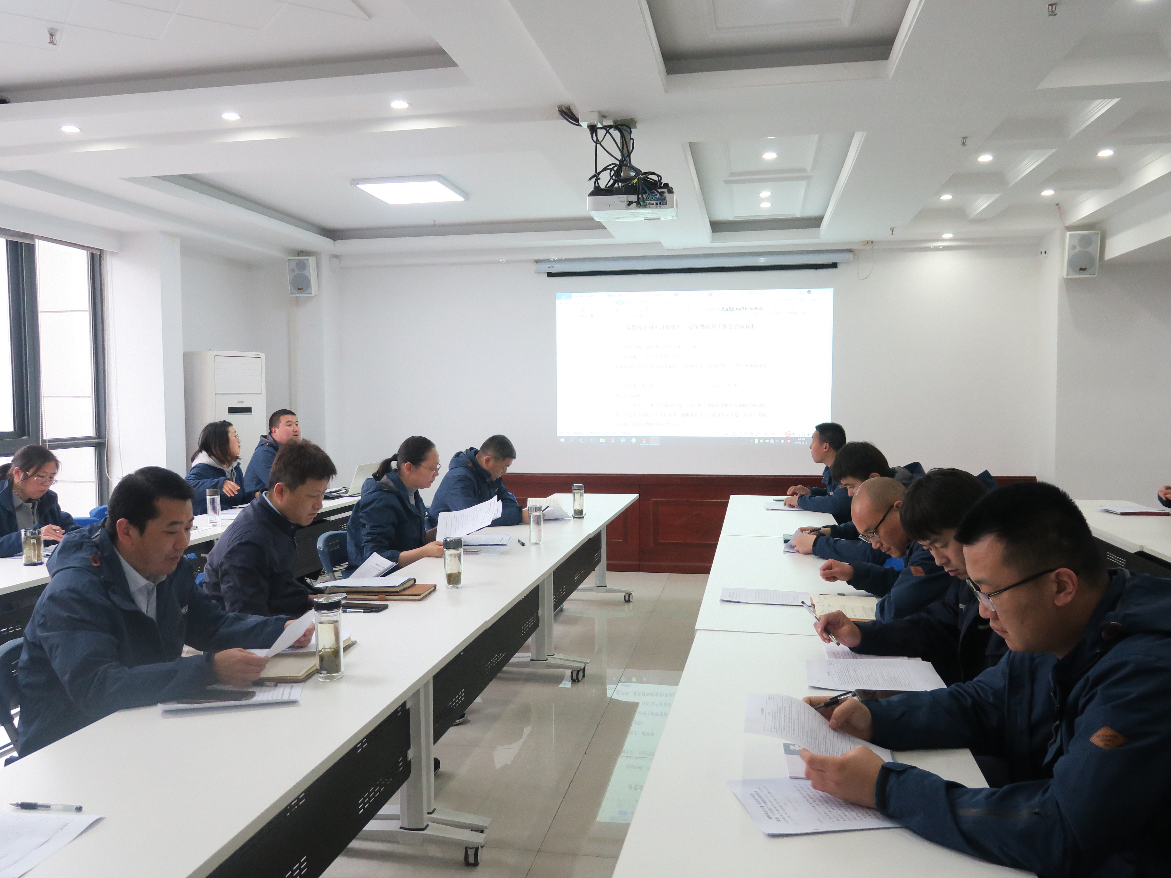 4月2日下午,合肥分公司召開了2021年4月份生產、安全暨經營工作會議。分公司領導班子成員,所屬各項目部經理,機關部門負責人及工程管理部全體員工20余人參會,會議由工程管理部主任黃彥濤主持。