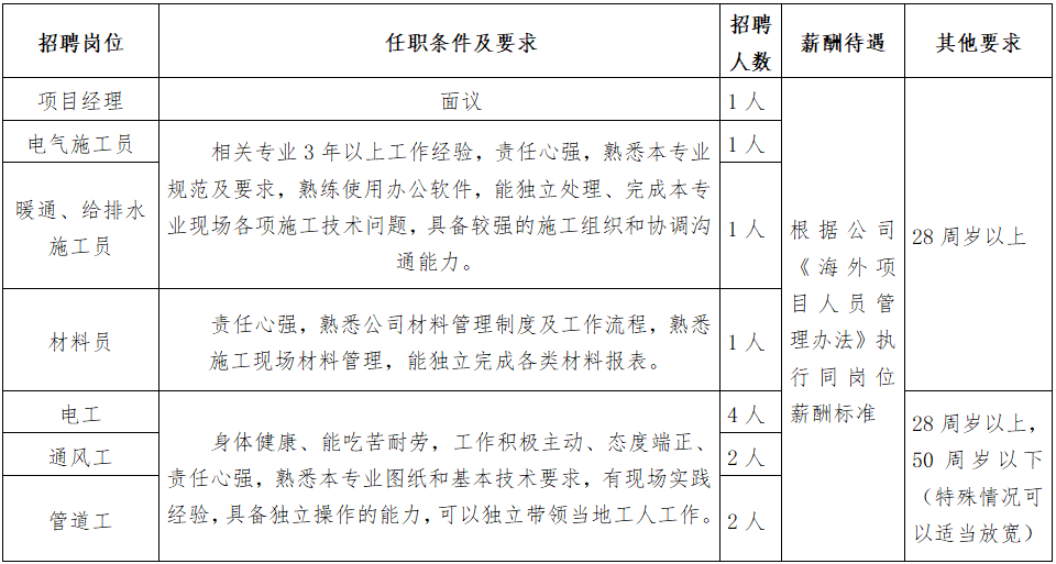 安徽省工業設備安裝有限公司阿爾及利亞項目內部招聘公告