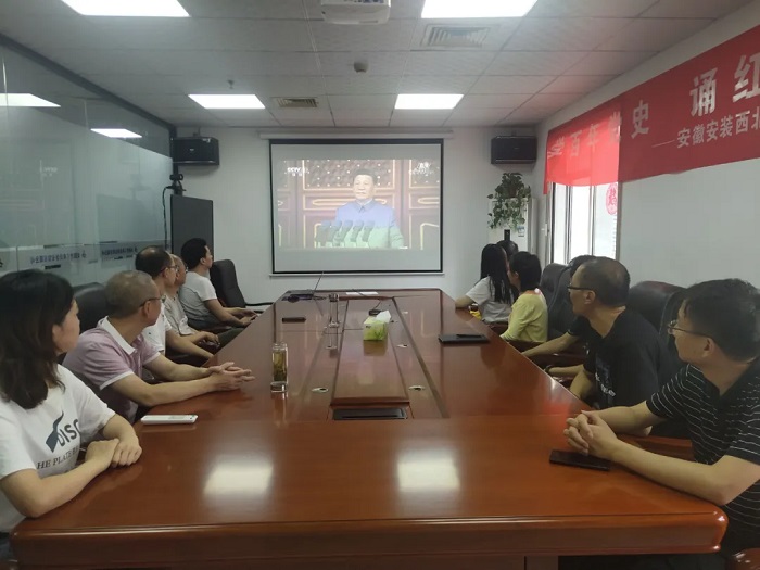 7月1日上午8:00,安徽安裝公司組織公司領(lǐng)導(dǎo)及各部門職工近70人集中收看慶祝中國共產(chǎn)黨成立100周年大會。