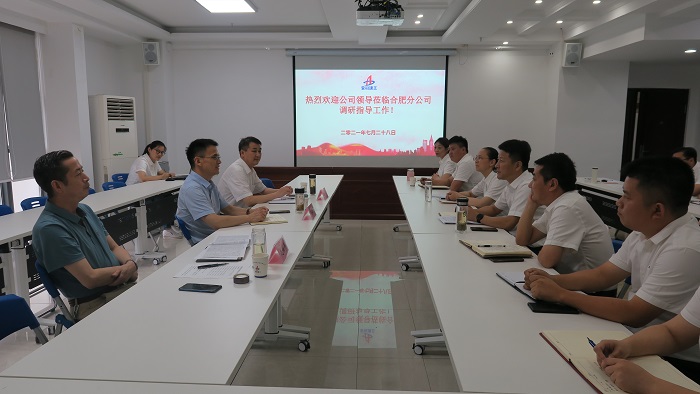 7月28日下午,公司黨委副書記、董事、副總經理周正平,黨委委員、紀委書記、工會主席李楊,黨委委員、副總經理趙伯平蒞臨合肥分公司調研指導工作,分公司領導班子成員、機關部門負責人,在肥項目經理參加調研會。