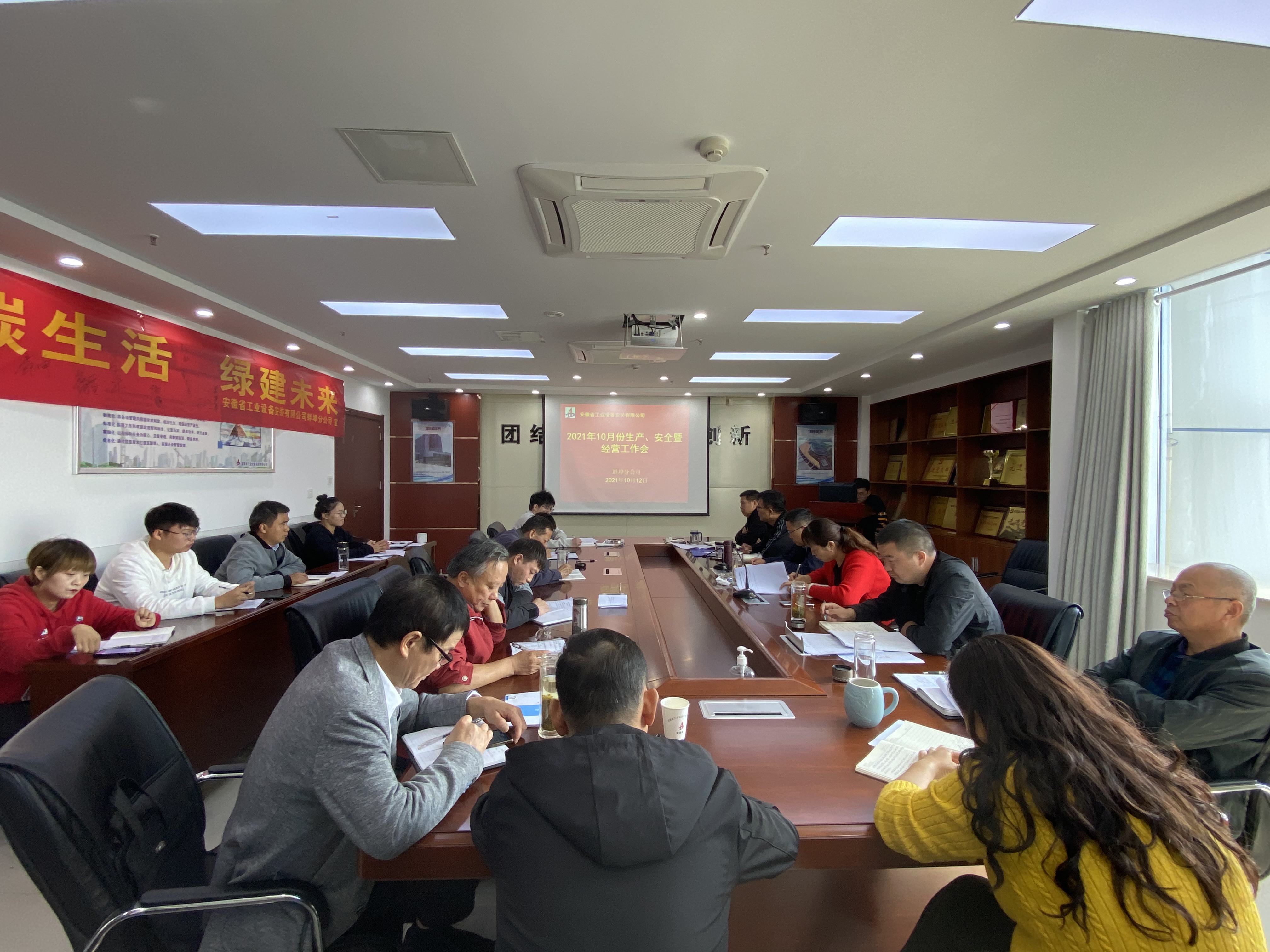 10月12日上午,蚌埠分公司組織召開10月份生產、安全暨經營工作會議,分公司領導班子成員、部門負責人、各在建項目經理及工程管理部全體員工參會。