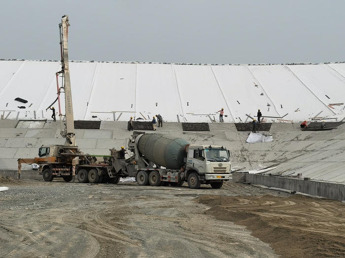 在廣袤的新疆戈壁灘上,晝間氣溫已達35℃以上,安徽安裝新疆烏蘇市供水改擴建調節蓄水池工程壩體混凝土面板澆筑施工現場,十多名職工冒酷暑、頂烈日,正在進行壩體混凝土面板澆筑施工。放空管線穿越石油管道開挖現場,機械轟鳴聲震耳欲聾,安徽安裝的工程建設者們在石油系統人員旁站監護和360度攝像頭實時監控下,面對約3000m3戈壁土艱難地進行人工開挖,他們揮汗如雨、汗流浹背,用樸實無華的行動踐行著安徽建工人的責任與擔當。