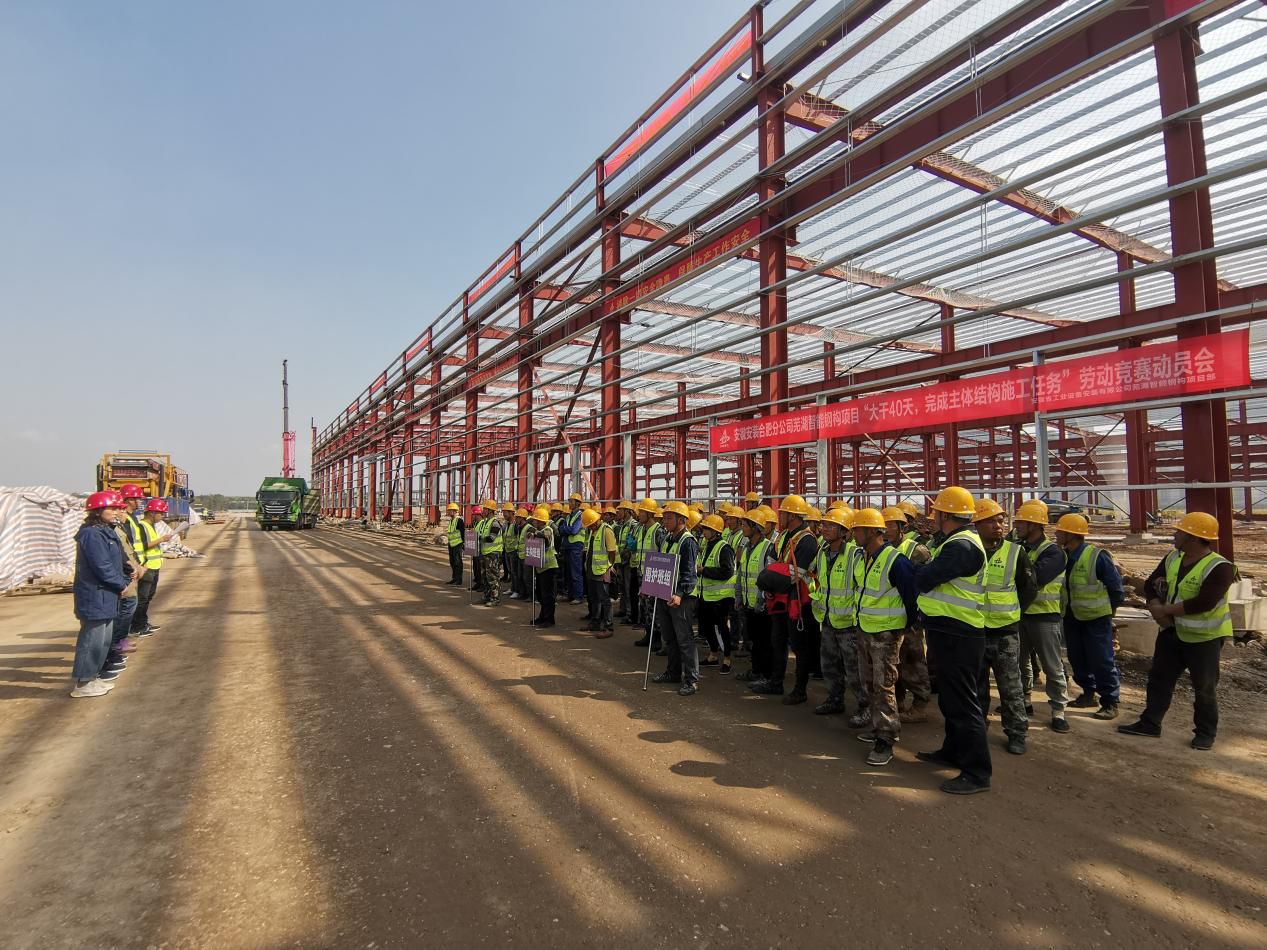 安徽安裝合肥分公司建工智能鋼構項目舉行“大干40天,完成主次構施工任務”勞動競賽動員會