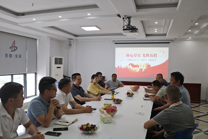 2021年8月1日是中國人民解放軍建軍94周年,8月2日,安徽安裝公司組織召開了“八一”建軍節主題座談會。座談會由公司工會副主席、人力資源部經理王敏主持,黨委書記、董事長胡六中出席,10名公司在職的退伍軍人參加了座談會。