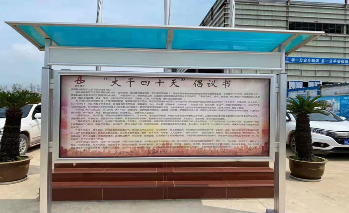 2021年8月18日,項目部向全體參建員工發出倡議,“大干40天,確保船舶車間地坪施工順利完成”正式啟動,項目部緊緊圍繞競賽主題“齊心協力保節點,安全優質樹形象”,及時召開“大干40天,確保船舶車間地坪施工順利完成”動員暨討論會,認真分析競賽開展背景和現實意義,統一思想,統一行動,科學組織,統籌安排,迅速掀起了工程建設競賽高潮。