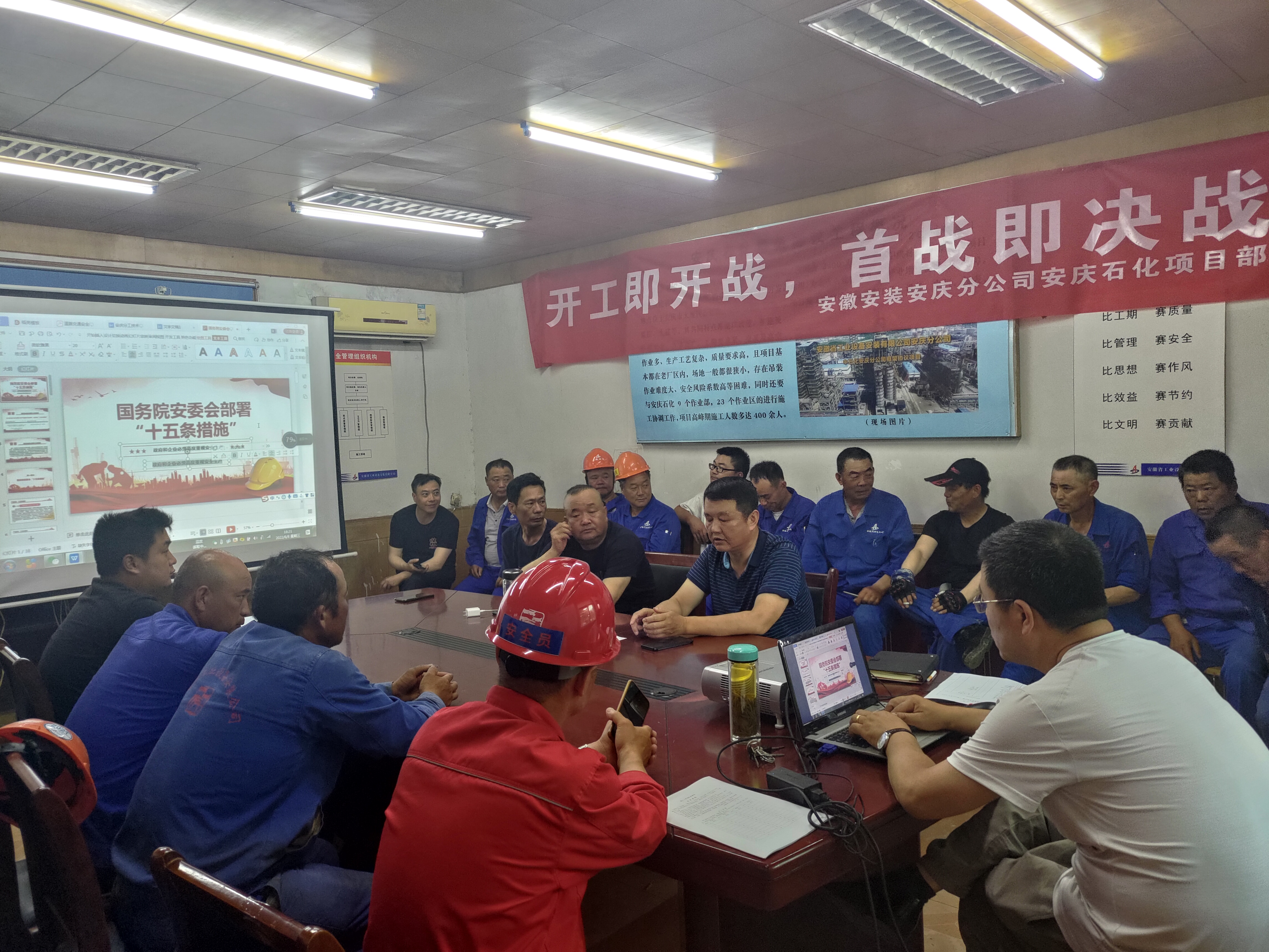 6月8日,在安慶石化項(xiàng)目部開展安全月集中宣講、培訓(xùn)輔導(dǎo)活動(dòng),結(jié)合項(xiàng)目特點(diǎn),對國務(wù)院十五條措施、新安全生產(chǎn)法、安慶石化交通安全、7+1直接作業(yè)環(huán)節(jié)管控等進(jìn)行講座。