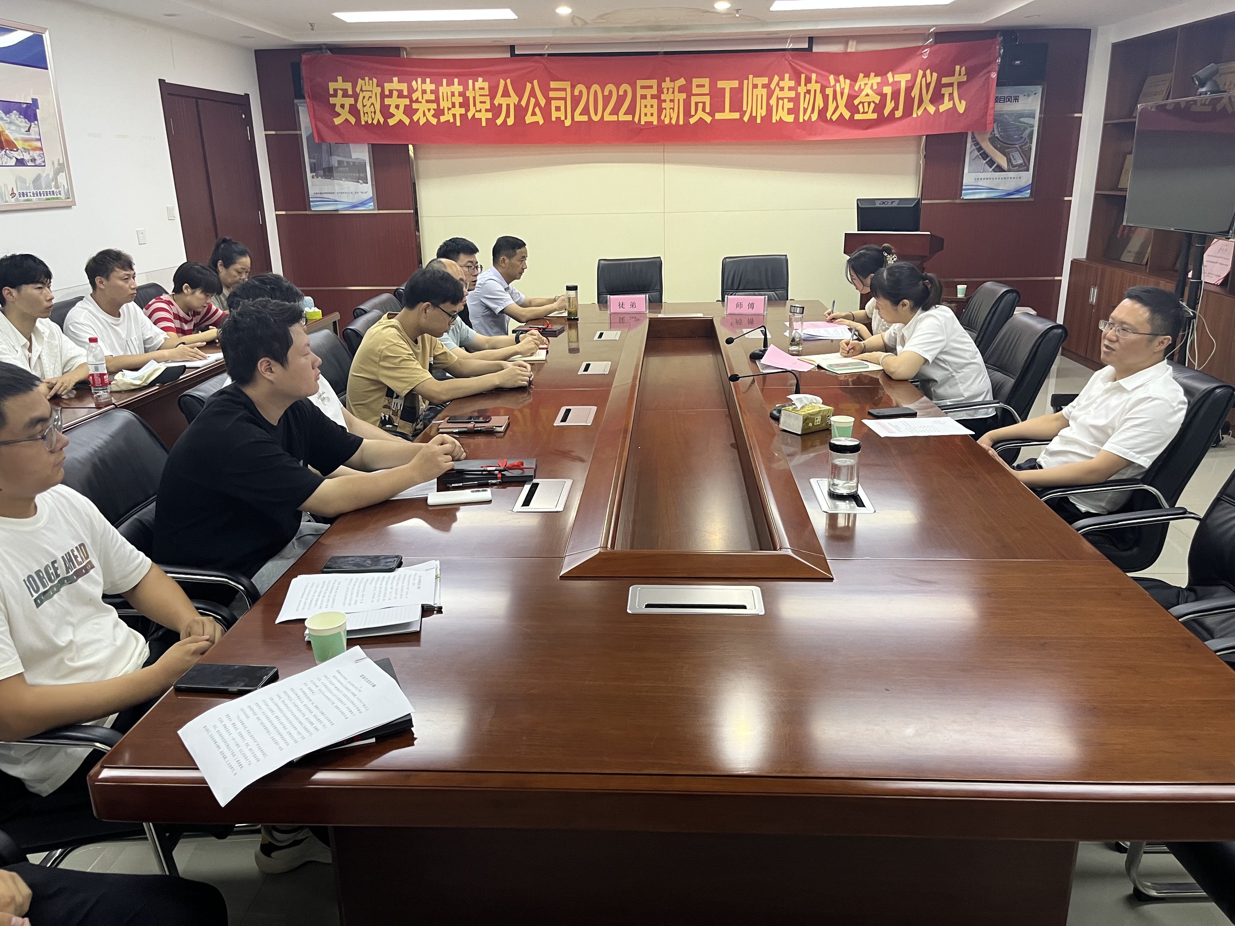 為使新員工盡快成長成才,加速人才培養,加強分公司人才梯隊建設。7月15日下午,蚌埠分公司黨支部舉行了“2022屆新員工師徒結對”簽訂儀式。分公司黨政主要領導、部門負責人、項目經理、六對結對師徒參加了此次會議。