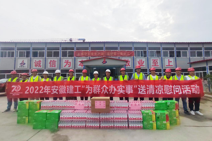 公司工會先后來到岳西中學建設項目(一期)安裝工程項目、中石化安慶分公司煉油轉化工200噸/小時污水汽提裝置項目、舒城第一中學遷建項目、四水廠DN1800、DN1400供水管道遷建工程管網項目、花園大道(徽州大道-包河大道)道路工程項目、定遠壹石通化學科技廠房項目、凱盛科技超薄柔性玻璃(UTG)二期5#、6#車間及配套設施工程項目,給廣大一線職工送去白糖、綠豆、礦泉水、飲料、藥品等防暑降溫物品,將工會組織的關心關愛傳遞給項目職工。