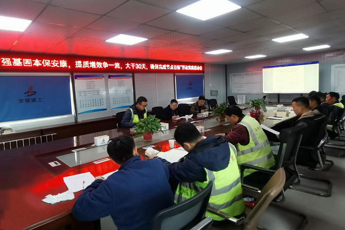 為持續貫徹落實集團公司“強基固本保安康,提質增效爭一流”主題勞動競賽活動精神,11月25日上午,蚌埠分公司蚌埠市公安局“三個基地”項目部召開“強基固本保安康,提質增效爭一流,大干30天,確保完成節點目標”勞動競賽啟動會。分公司經理、黨支部副書記趙銘亮,黨支部書記、副經理王偉,項目部全體管理人員及施工班組代表參加會議。