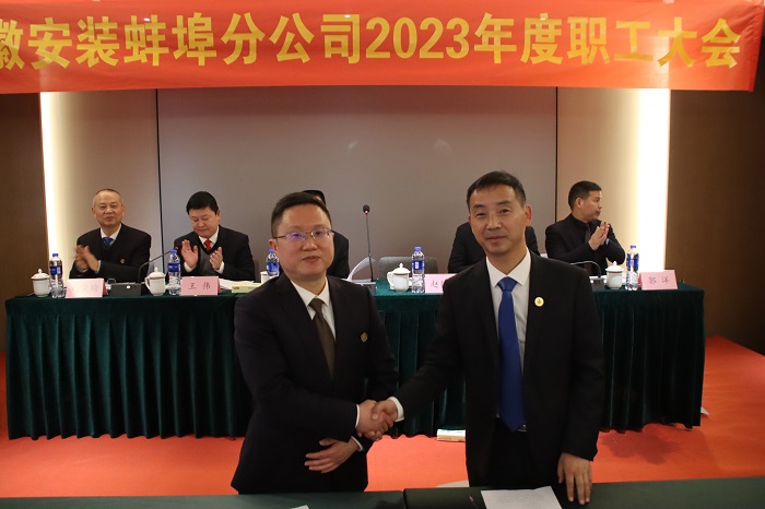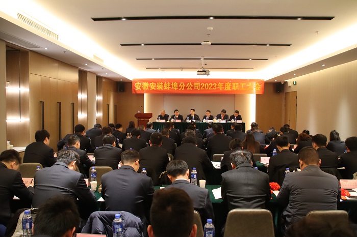 2月23日,蚌埠分公司順利召開2023年度職工大會,分公司全體員工參加會議,公司黨委書記、董事長胡六中應邀出席會議并講話,黨委辦公室、人力資源部主要負責同志到會,會議由分公司黨支部書記、副經理王偉主持。