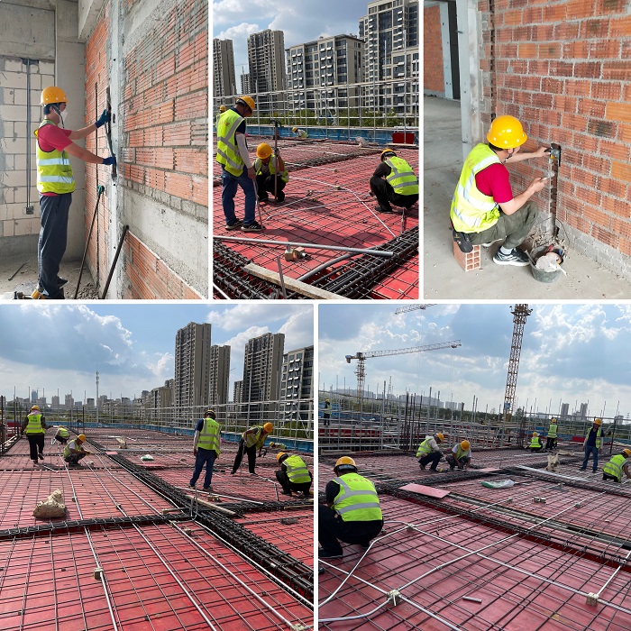 岳西中學(xué)項(xiàng)目大部分建筑單體已經(jīng)封頂,為了搶抓進(jìn)度,五一假期項(xiàng)目部人員采取“白加黑”的工作方式,主動(dòng)延長作業(yè)時(shí)間,積極開展對(duì)已封頂樓棟的二次配管工作和未封頂?shù)臉菞澃迕婢€管預(yù)埋工作,為實(shí)現(xiàn)節(jié)點(diǎn)目標(biāo)任務(wù)不斷向前沖刺!