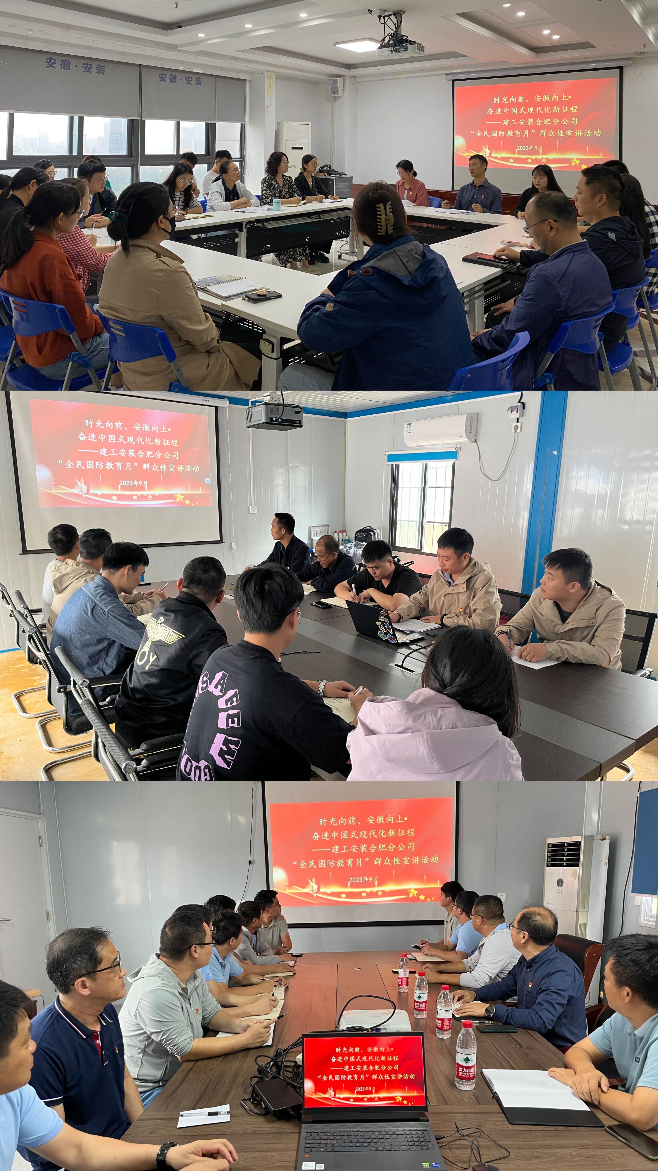 此次活動以“時光向前、安徽向上?奮進(jìn)中國式現(xiàn)代化新征程”為主題,分別在公司機(jī)關(guān)和項(xiàng)目部進(jìn)行宣講。會上,大家首先共同學(xué)習(xí)了習(xí)近平總書記給潛山野寨中學(xué)新考取軍校的20名同學(xué)重要回信精神,習(xí)近平總書記對軍校新生的殷切鼓勵和諄諄教誨,讓大家深受觸動、備受鼓舞。接著,分公司退伍軍人代表還與大家分享了自身軍旅生涯經(jīng)歷、從軍人身份轉(zhuǎn)變?yōu)槠髽I(yè)員工的心路歷程以及對工作崗位的感悟,并通過切身經(jīng)歷展現(xiàn)出當(dāng)代軍人聽黨話、跟黨走,堅決服從命令,在危難時刻視死如歸、以人民利益為最高使命的堅強(qiáng)意志和決心。分公司新入職員工也分享了他們的入職感悟和學(xué)習(xí)心得,表示要熱愛祖國、珍惜時光,不斷學(xué)習(xí)新知識、練就新本領(lǐng),盡快成長成才,為公司發(fā)展做貢獻(xiàn)。