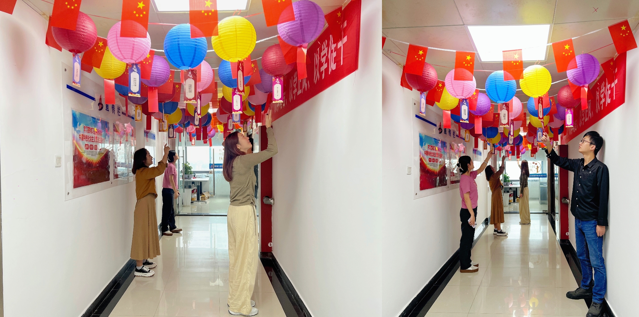 活動期間,分公司購置了各類節日裝飾品,對分公司工作環境進行了精心裝扮,鮮紅的國旗和多彩的燈籠營造了濃厚的節日氛圍。活動過程中,分公司員工盡情分享工作中的感想與收獲,品嘗擺放的石榴等水果以及各式月餅,積極踴躍參加猜燈謎、投壺游戲等活動。在制作燈籠環節,員工們全神貫注,仔細認真地搭接燈籠的每一個構件,看著承載著團圓的傳統藝術品在手中慢慢成形,大家歡聲笑語、頗有成就。