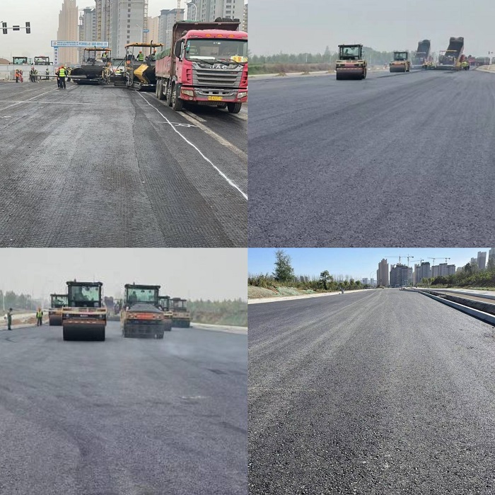 為了確保第一層瀝青安全高效攤鋪,項目部超前謀劃、科學組織、精心安排,圍繞瀝青攤鋪施工工藝、質量控制要點、機械設備安全操作規程及現場施工注意事項等方面進行詳細的安全技術交底。攤鋪過程中,項目部嚴格控制瀝青混合料運輸、瀝青料攤鋪溫度、松鋪系數和碾壓工藝等工序,只見現場機械隆隆作響,讓這條1.25公里的筆直“巨龍”漸漸穿上黑色“鱗甲”;經過近15個小時奮戰,順利完成瀝青第一層瀝青攤鋪任務。