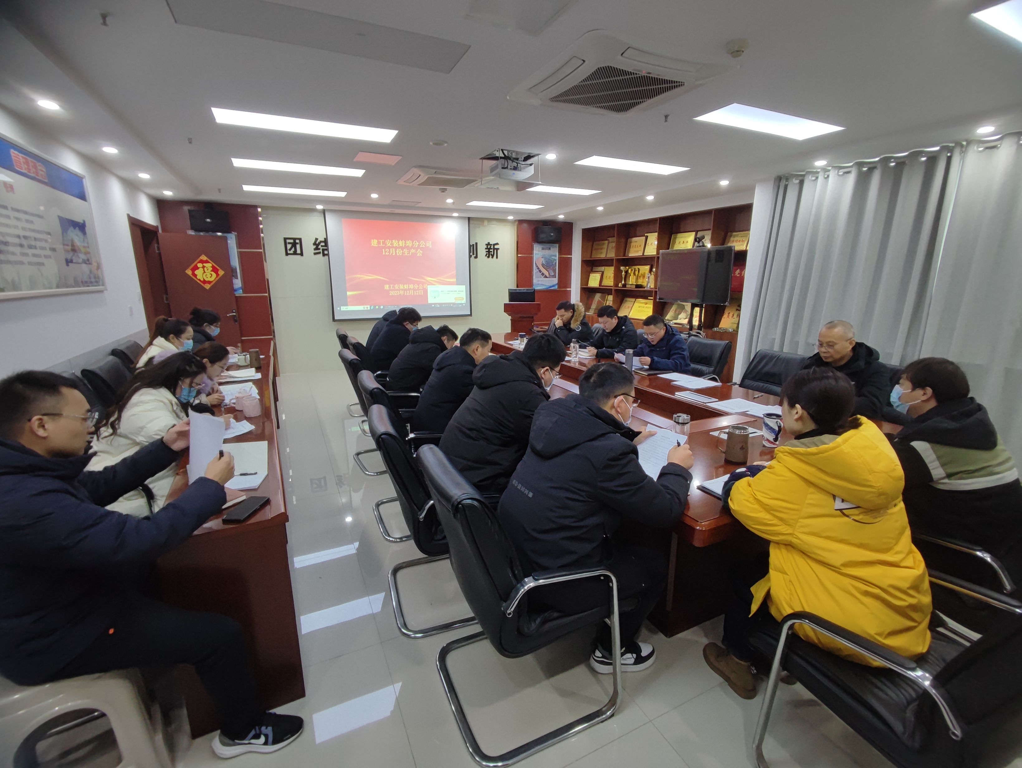 12月12日上午,建工安裝蚌埠分公司在機關會議室召開12月份生產安全經營會,分公司領導班子成員、各項目主要負責人、機關各部門負責人及工程部全體員工參加會議,會議由分公司副經理郭洋主持。