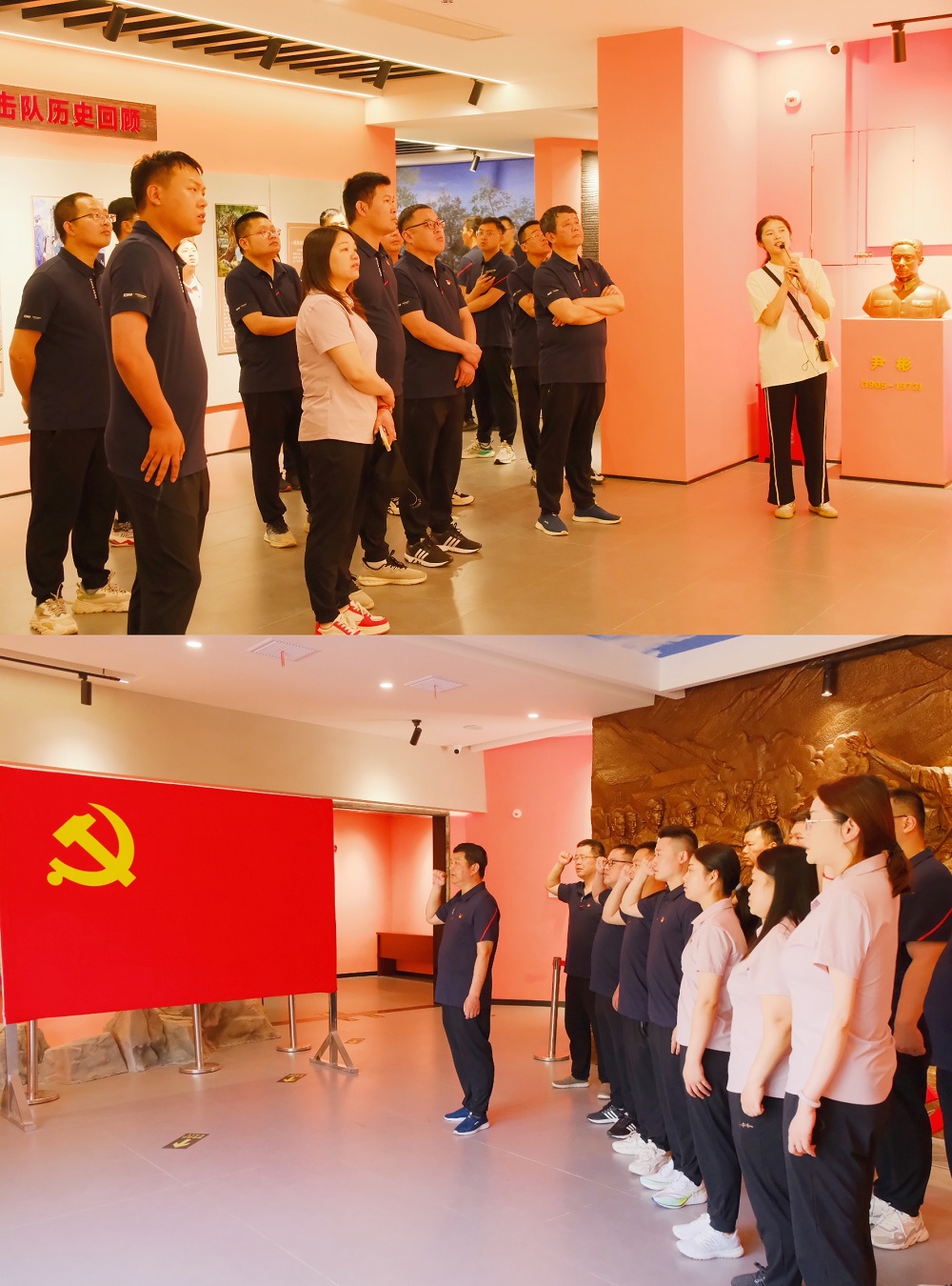 在紀念館內(nèi),通過參觀展區(qū)內(nèi)陳列的各類圖片、文獻以及實物等資料,大家追尋紅色足跡,深入了解革命先輩浴血奮戰(zhàn)的革命歷史和革命精神,深情追憶老一輩共產(chǎn)黨人的英勇事跡,深切緬懷流血犧牲的革命先烈。參觀學(xué)習(xí)結(jié)束后,全體黨員干部在紀念館前重溫了入黨誓詞。