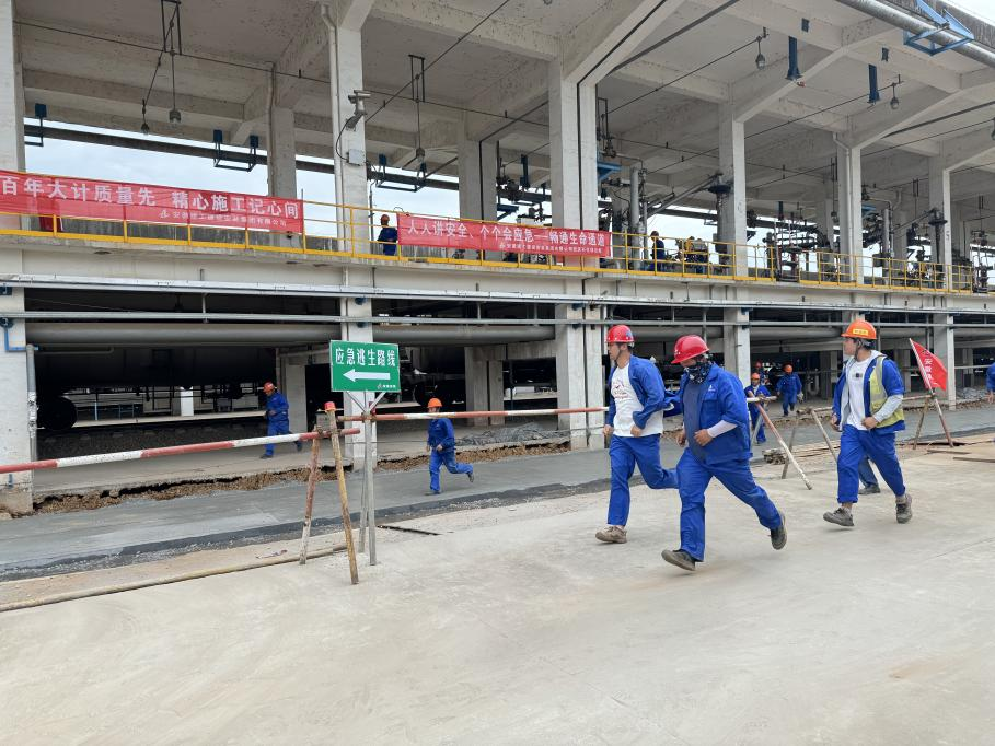 6月18日,為進(jìn)一步提高項(xiàng)目部全員安全防范意識和安全事故應(yīng)急能力,檢驗(yàn)應(yīng)急預(yù)案的可執(zhí)行性,使人員掌握應(yīng)急救援運(yùn)行程序和方法,提高應(yīng)急救援小組應(yīng)急處置和協(xié)調(diào)作戰(zhàn)的能力,分公司在鐵路卸苯項(xiàng)目上聯(lián)合萬緯監(jiān)理單位開展應(yīng)急逃生演練。