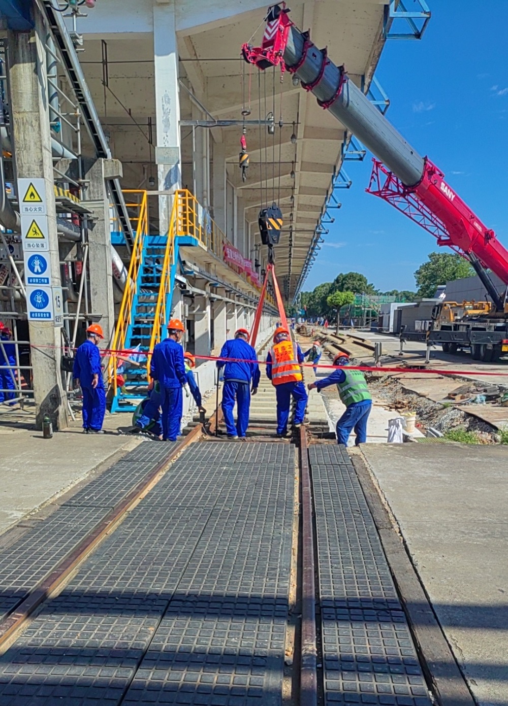 在建工安裝安慶分公司新增鐵路接卸純苯設施項目施工現場,為將前期因雨天耽誤的工期“搶”回來,施工隊伍采取快速穿插方式對電纜鋪設、整體道床排水溝施工、站內管廊焊接等項目有條不紊地同步推進,力爭進度如期推進。