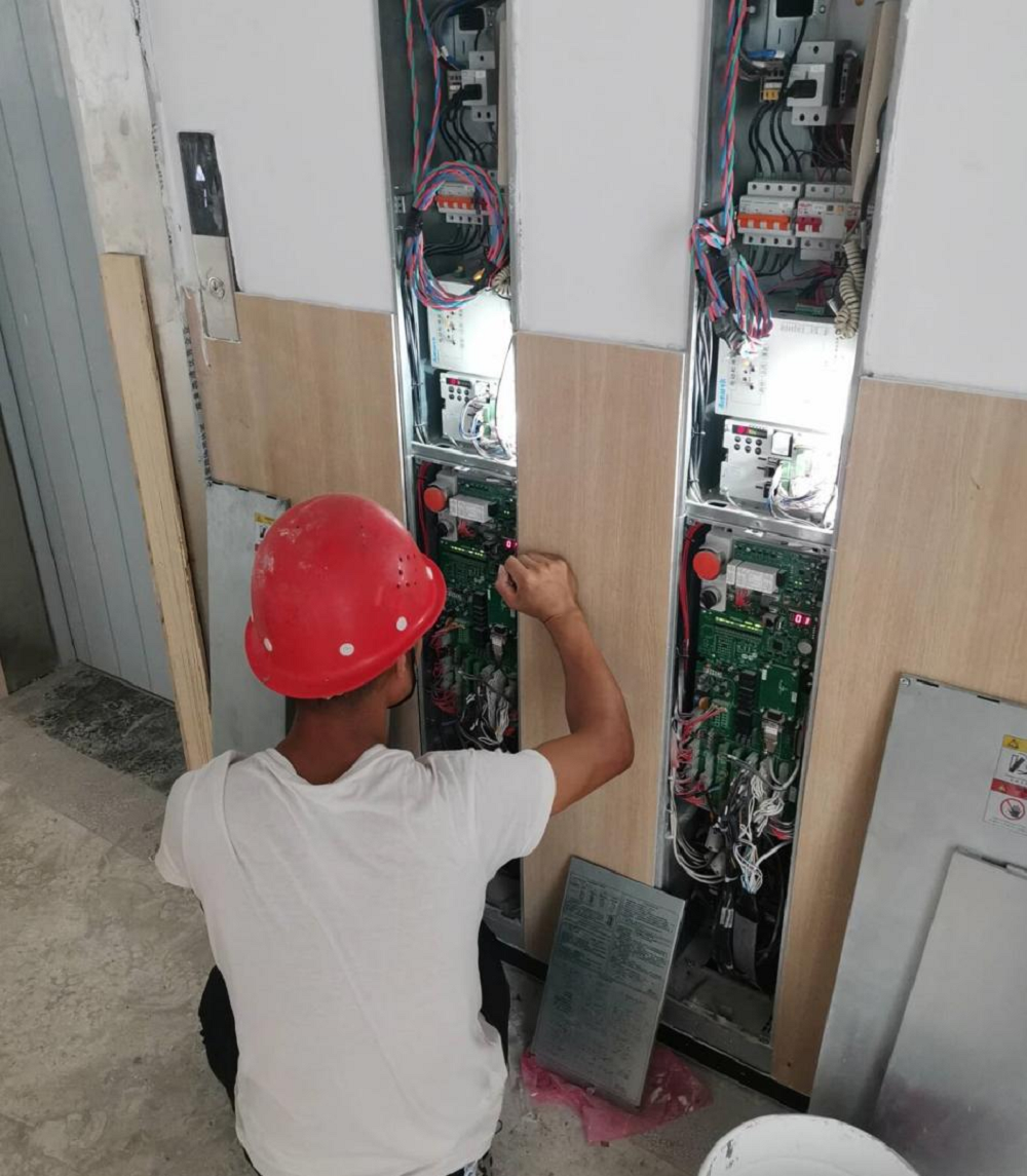 蚌埠自貿(mào)區(qū)山香學校項目施工人員正在進行無機房電梯檢驗