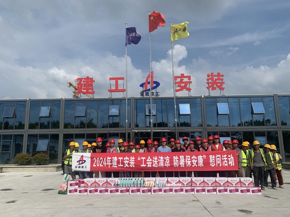 7月16—26日,建工安裝集團(tuán)組織開展“工會(huì)送清涼 防暑保安康”慰問活動(dòng),此次送清涼慰問活動(dòng)先后來到安慶石化新增鐵路接卸純苯設(shè)施項(xiàng)目、花崗智能制造產(chǎn)業(yè)園EPC項(xiàng)目電梯采購(gòu)與安裝工程、合肥經(jīng)開區(qū)臨湖智能制造產(chǎn)業(yè)園及基礎(chǔ)設(shè)施配套項(xiàng)目安裝工程施工專業(yè)分包工程、安徽深巖醫(yī)藥化工科技有限公司醫(yī)藥中間體及新材料項(xiàng)目廠區(qū)單體工程、阜南縣第一小學(xué)(東校區(qū))項(xiàng)目、烏蘇市南苑新城小區(qū)住宅樓建設(shè)項(xiàng)目,給廣大一線職工送去白糖、綠豆、礦泉水、花露水、藿香正氣、十滴水等防暑降溫物品,將工會(huì)組織的關(guān)心關(guān)愛傳遞給項(xiàng)目一線職工,為夏季高溫安全生產(chǎn)和職工身體健康提供保障。