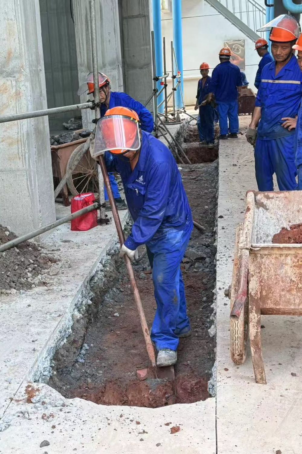 安慶石化熱電部干灰區(qū)域增設(shè)車輛清洗設(shè)施及排水溝改造項(xiàng)目于今年7月底開工。項(xiàng)目現(xiàn)場施工工人熱情高漲,頂著高溫酷暑堅守一線,目前已完成排水溝開挖工作。