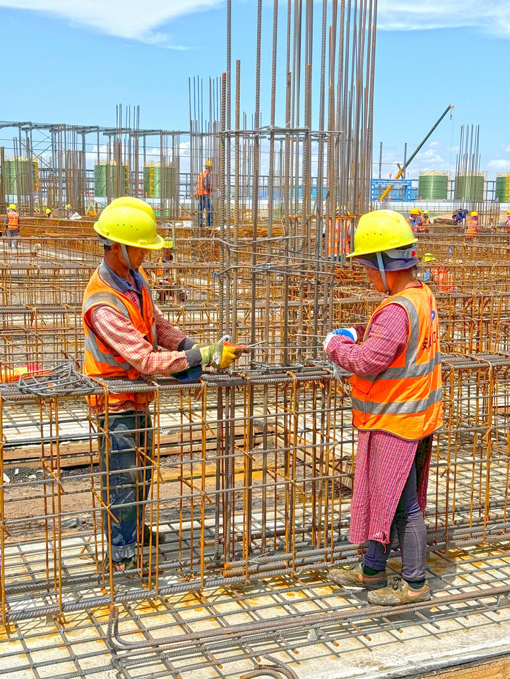 該項目施工現場人頭攢動,機械轟鳴,駐場技術人員頭頂烈日、靠前指揮,施工工人往來穿梭,或支設模板,或綁扎鋼筋,與夏競速,“激戰”正酣。項目工期緊任務重,為搶進度、嚴安全、保工期、抓質量,項目部嚴格制定施工進度計劃,統籌安排施工人、材、機,合理高效進場施工作業,目前項目正在進行變電所及廠房的基礎工程。