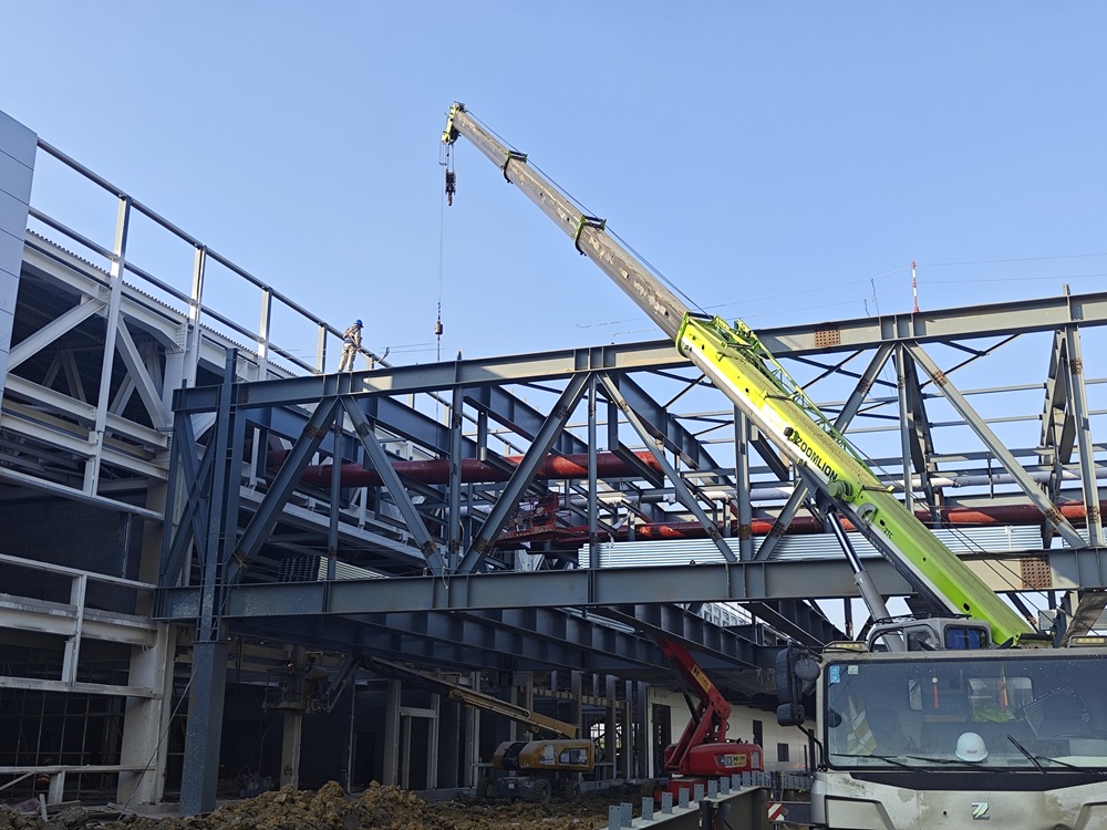 雖已立冬,天氣轉(zhuǎn)涼,但合肥新橋智能制造產(chǎn)業(yè)園一階段一標(biāo)項目部戰(zhàn)鼓依然在響,施工現(xiàn)場依舊是一片奮戰(zhàn)猶酣的火熱場面。吊車揮舞著“長臂”、升降車起起落落、施工車來回穿梭、工人們忙忙碌碌,敲擊聲聲聲入耳……一切都在為確保競賽節(jié)點努力拼搏著。