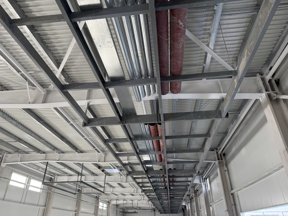 本周,焊裝車間已完成全部實物工程量,循環水、空調水、消防水、生活給水、冷凝水、虹吸雨水等全面進入系統試壓階段。同步配合完成了總包單位焊接機器人進場的細節工作。目前,車間一QA樓與沖壓車間正在進行安裝工作,能源中心同步施工,冷卻塔、板式換熱器已有序進場安裝。