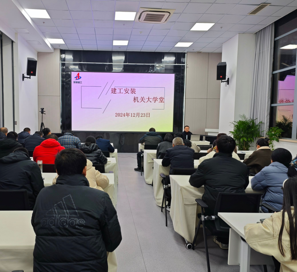 2024年12月23日在公司第一會議室如期舉行第四期建工安裝機關(guān)部門大學堂,本期大學堂由總工辦(技術(shù)中心)副主任夏輝進行授課,建工安裝黨委委員、副總經(jīng)理董雙武和機關(guān)全體職工參加了講座。