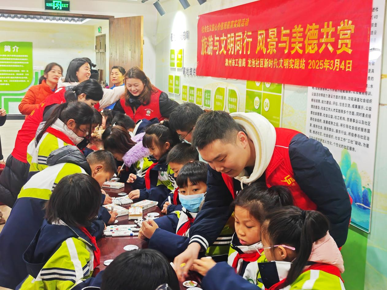 在活動現場,團員青年們化身“志愿導師”,帶領15名小學生共同制作“雷鋒紀念徽章”,小朋友們充分發揮想象力,努力描繪出自己心中的雷鋒,興高采烈地開始了DIY雷鋒主題徽章的制作。從繪制、涂色到壓版,青年志愿者們一邊手把手指導孩子們完成徽章創作,一邊講述雷鋒同志助人為樂、無私奉獻的感人故事。一枚枚印有“向雷鋒同志學習”“紀念雷鋒”等字樣的徽章,在孩子們的巧手中誕生,成為傳承雷鋒精神的生動載體,也在小朋友們心間種下了“雷鋒精神”的種子?!拔乙窭卒h叔叔一樣,多幫助同學!”一名小朋友佩戴著親手制作的徽章,堅定地說道。
