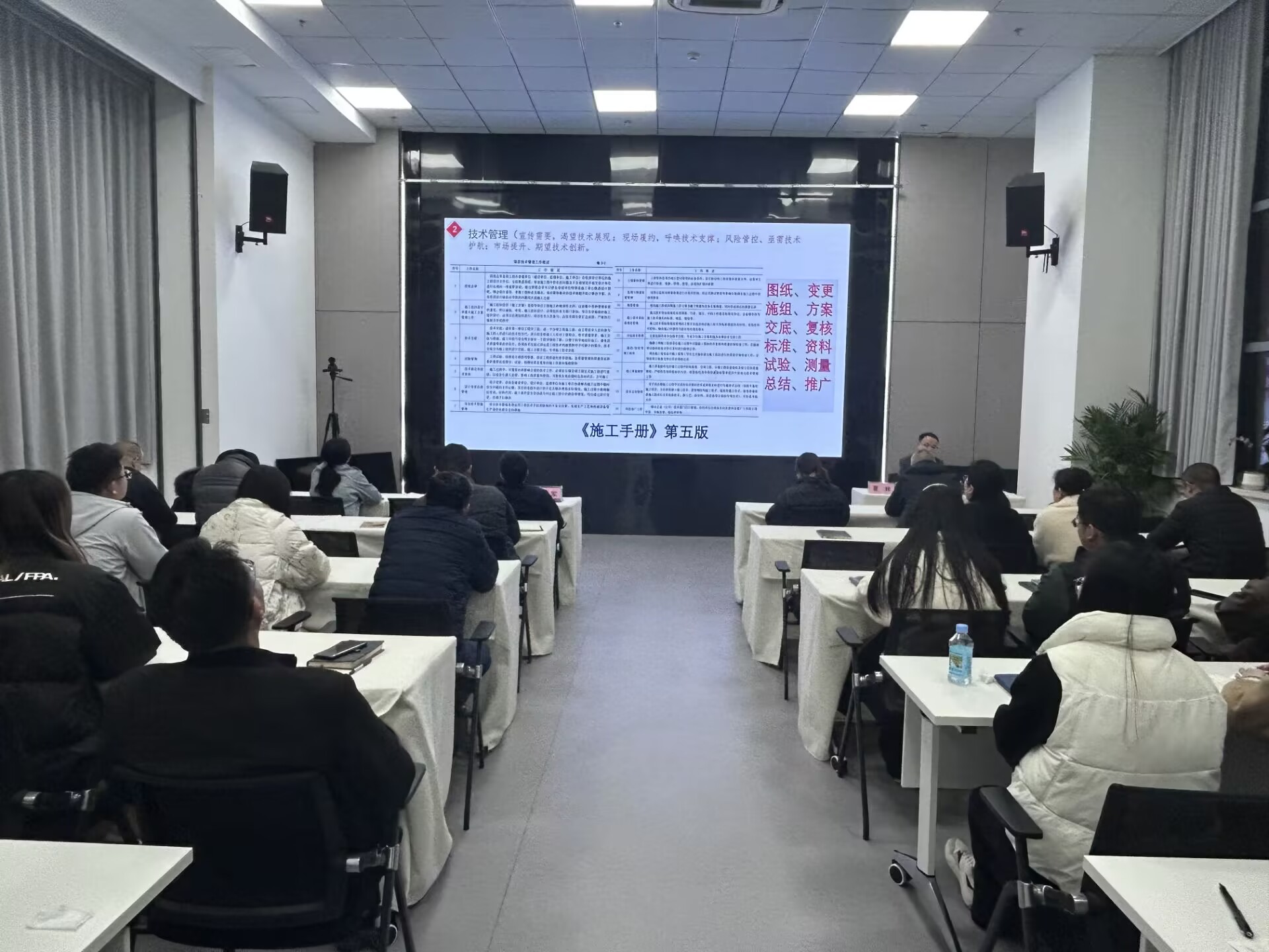 夏輝以中央發(fā)布的《一張思維導圖帶大家看2025年政府工作十大任務》的切入點,強調了高質量發(fā)展和創(chuàng)新驅動的重要性。隨后他從技術管理、機電工程體系、機電工程安裝工藝細部節(jié)點做法優(yōu)選、AI應用等方面對機電工程基礎知識進行了細致解讀,講解了技術在企業(yè)運營中的核心作用。就《聚焦機電主責主業(yè) 走“專精特強”之路行動方案》(第一版)與參培人員進行深入交流。