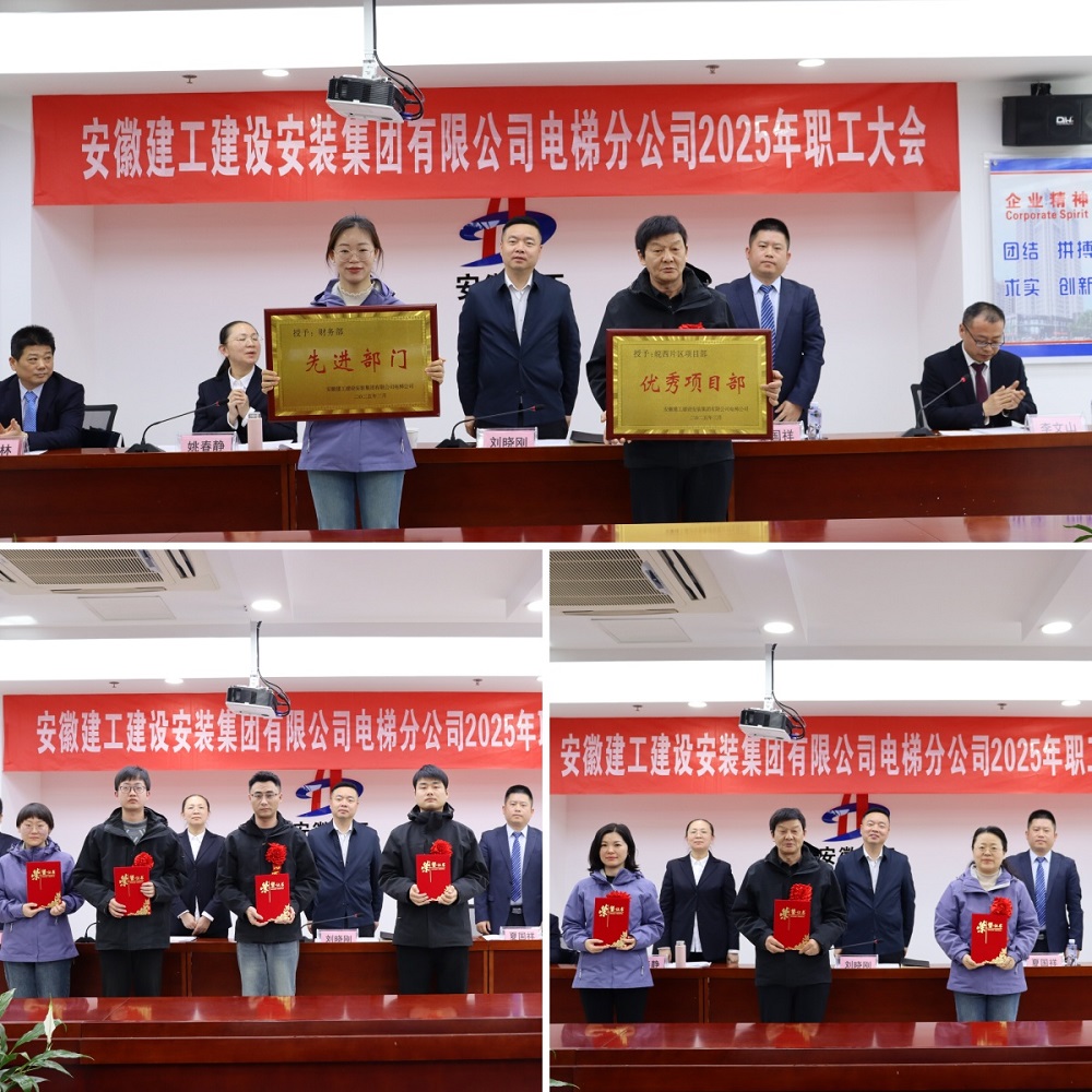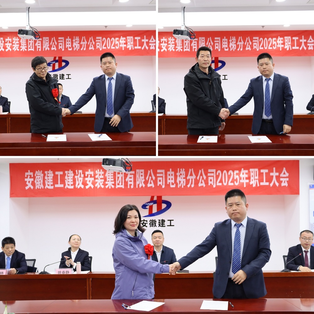 會(huì)上,宣貫了建工集團(tuán)三屆二次職代會(huì)暨2025年工作會(huì)議和建工安裝十七屆五次職代會(huì)精神,與分公司市場(chǎng)開(kāi)發(fā)部及所屬各片區(qū)項(xiàng)目部簽訂了《2025年度經(jīng)濟(jì)責(zé)任書(shū)》,表彰了電梯分公司2024年度先進(jìn)集體和先進(jìn)個(gè)人。